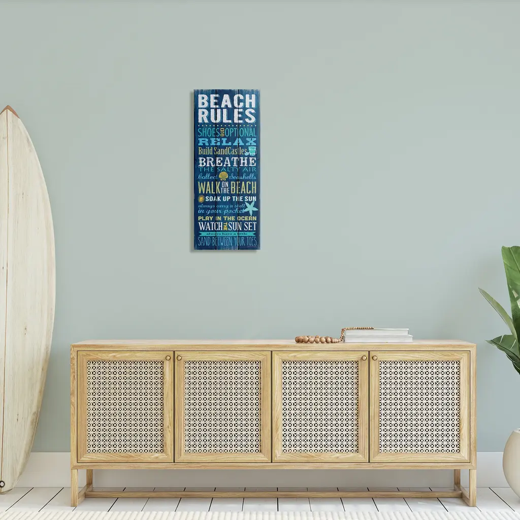 Stupell Beach Rules Sign Blue Planked Pattern Motivational Phrases Canvas Wall Art - White - 13 X 30