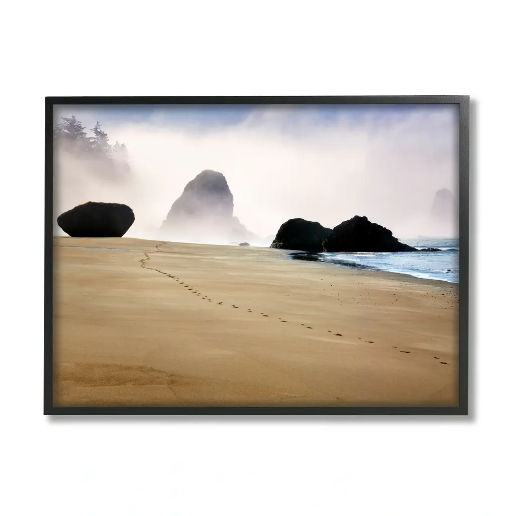 Add dimension to any room with our textured Framed Giclee Artwork. Our framed artwork is securely mounted into a 1.5-inch thick wood grain frame and ready to hang. Frames are available in three alluring styles: black, gray farmhouse and white. In addition, you should check out our oversized options if you want a statement piece. Stupell Wall Art is made in the USA.Features: Dimensions: 14 x 1.5 x 11 FramedFramed Giclee Sizes Include Standard: 14 x 1.5 x 11 Large: 20 x 1.5 x 16 Oversized: 30 x 1.5 x 24Wall Art is Ready to Hang - No Installation or Hardware Needed. For Easy Set Up Lean or Layer Artwork on Shelf or Against Wall.Our giclée prints are carefully mounted on a durable MDF backing, and then perfectly finished in a 1.5 inch thick woodgrain frame. Mounted frame colors include black, gray farmhouse and white. Made In USA.Artwork Relates To: Beach, Coast, Nature, Outdoors, Sea, Shoreline, Water, Scenery, Landscape, Sand, Rock, FootprintDesign by Dennis Frates