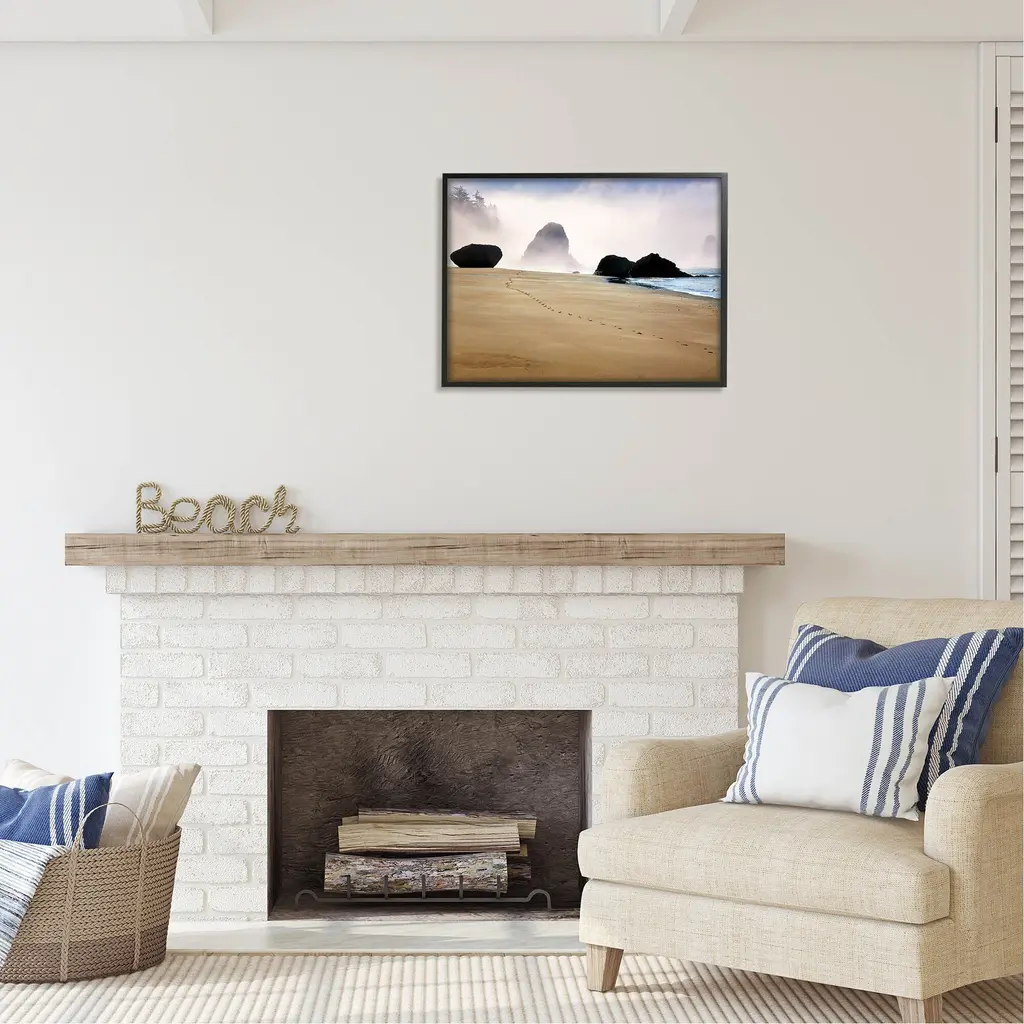 Stupell Beach Sand Footprints Foggy Cliffs Framed Giclee Art By Dennis Frates - 30 X 24 - Black