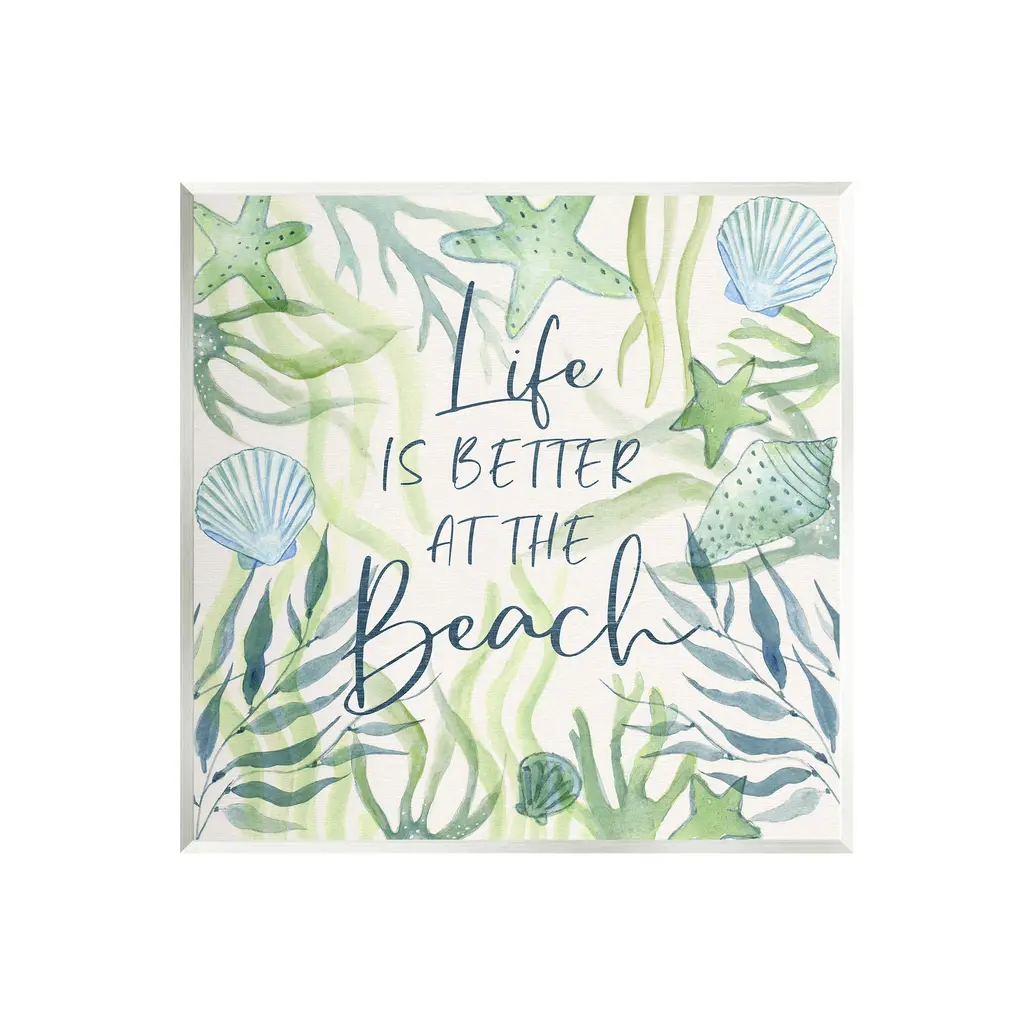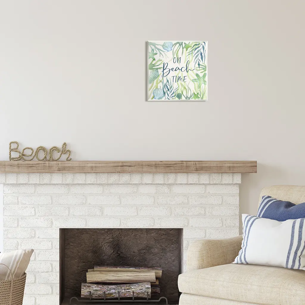 Our wall plaques start as high-quality lithograph prints mounted on durable 0.5-inch thick MDF wood. Each piece is hand finished and comes with a fresh layer of white foil on the sides to give it a crisp, clean look. Plaques arrive ready to hang without installation and come with removable plastic corners to keep them from damage in transit. Stupell Industries Wall Art is made in the USA.Features: Dimensions: 12 x 0.5 x 12 InchesWall Art is Ready to Hang with Hardware Free Hanging. No installation required. For Easy Set Up Lean or Layer Artwork on Shelf or Against Wall.All of our wall plaques start off as high quality lithograph prints that are then mounted on durable 0.5 inch thick MDF wood. Each piece is hand finished and comes with a fresh layer of foil on the sides to give it a crisp clean look. Made In USA.Artwork Relates To: Phrase, Sea Life, Seashell, Starfish, Seaweed, Nautical, On Beach TimeDesign by Janet Tava