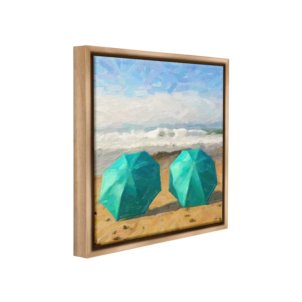 Elevate your home or office to the next level with Stupell Framed Floating Canvas Wall Art. Our premium hand-stretched canvas is mounted securely into a sturdy lightweight frame. The museum-style gap between the wrapped canvas and the box frame gives the illusion of floating artwork. Stupell Wall Art is made in the USA.Features: Dimensions: 18 x 1.7 x 18 Frame, 17 x 1.5 x 17 Canvas ArtFloating Frame Canvas Products are available in sizes 18"x18" and 25"x25". All Floating Frame Canvas Products have a 1.7" Depth.Wall Art is Ready to Hang with Hardware Free Hanging. No Installation required. For Easy Set Up Lean or Layer Artwork on Shelf or Against Wall. Artwork is Permently Fixed into the Frame.Our elevated 1.7" Thick Floating Frame is the perfect complement to our canvas style Wall Art. We use only the highest quality inks in house with industry leading printing solutions. Canvas is hand stretched over a durable wood foundation and then mounted securly into a Modern Box Frame. Made in the USA.Artwork Relates To: Beach, Ocean, Shore, Sea, Coast, Umbrellas, WavesDesign by GraffiTee Studios