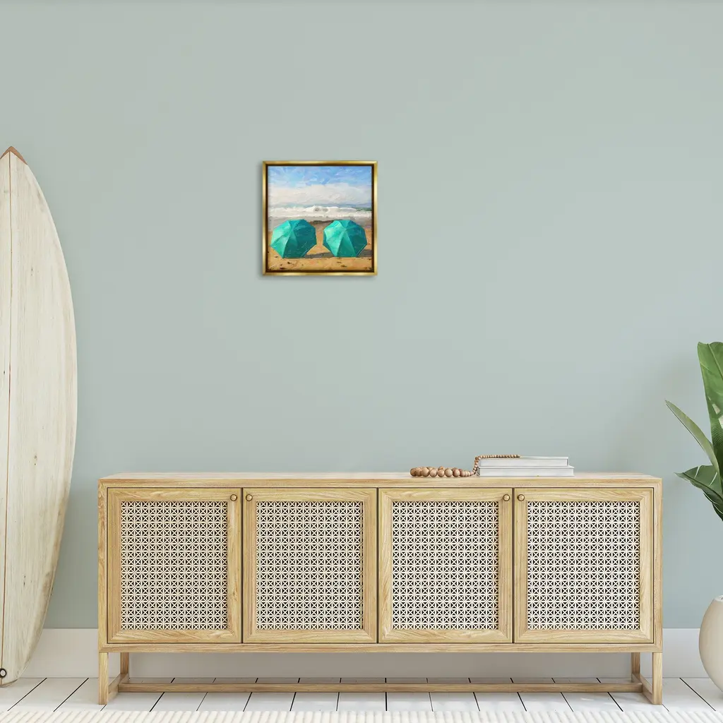 Stupell Beach Umbrella Duo Framed Floater Canvas Wall Art Design By Graffitee Studios - 18 X 18 - Gold