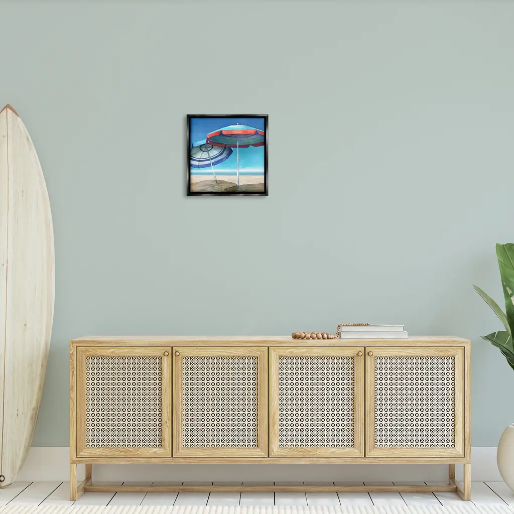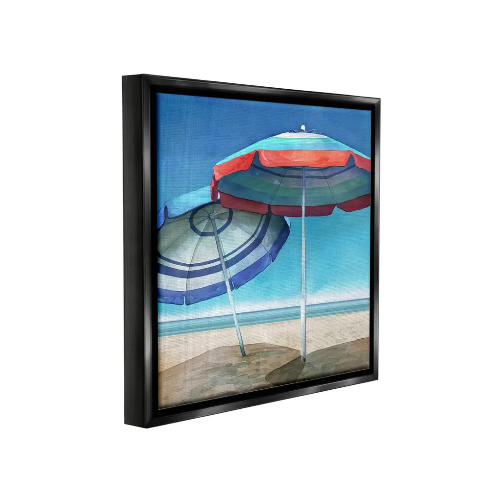 Elevate your home or office to the next level with Stupell Framed Floating Canvas Wall Art. Our premium hand-stretched canvas is mounted securely into a sturdy lightweight frame. The museum-style gap between the wrapped canvas and the box frame gives the illusion of floating artwork. Stupell Wall Art is made in the USA.Features: Dimensions: 18 x 1.7 x 18 Frame, 17 x 1.5 x 17 Canvas ArtFloating Frame Canvas Products are available in sizes 18"x18" and 25"x25". All Floating Frame Canvas Products have a 1.7" Depth.Wall Art is Ready to Hang with Hardware Free Hanging. No Installation required. For Easy Set Up Lean or Layer Artwork on Shelf or Against Wall. Artwork is Permently Fixed into the Frame.Our elevated 1.7" Thick Floating Frame is the perfect complement to our canvas style Wall Art. We use only the highest quality inks in house with industry leading printing solutions. Canvas is hand stretched over a durable wood foundation and then mounted securly into a Modern Box Frame. Made in the USA.Artwork Relates To: Beach, Coast, Sea, Shoreline, Nautical, Shore, Beach Umbrella, CoastalDesign by Mauro Devereaux