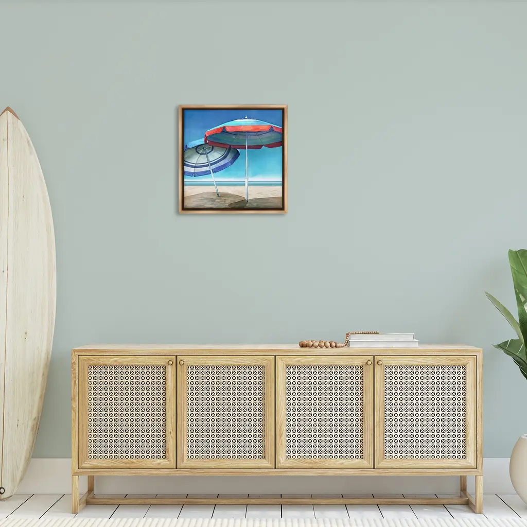 Elevate your home or office to the next level with Stupell Framed Floating Canvas Wall Art. Our premium hand-stretched canvas is mounted securely into a sturdy lightweight frame. The museum-style gap between the wrapped canvas and the box frame gives the illusion of floating artwork. Stupell Wall Art is made in the USA.Features: Dimensions: 18 x 1.7 x 18 Frame, 17 x 1.5 x 17 Canvas ArtFloating Frame Canvas Products are available in sizes 18"x18" and 25"x25". All Floating Frame Canvas Products have a 1.7" Depth.Wall Art is Ready to Hang with Hardware Free Hanging. No Installation required. For Easy Set Up Lean or Layer Artwork on Shelf or Against Wall. Artwork is Permently Fixed into the Frame.Our elevated 1.7" Thick Floating Frame is the perfect complement to our canvas style Wall Art. We use only the highest quality inks in house with industry leading printing solutions. Canvas is hand stretched over a durable wood foundation and then mounted securly into a Modern Box Frame. Made in the USA.Artwork Relates To: Beach, Coast, Sea, Shoreline, Nautical, Shore, Beach Umbrella, CoastalDesign by Mauro Devereaux
