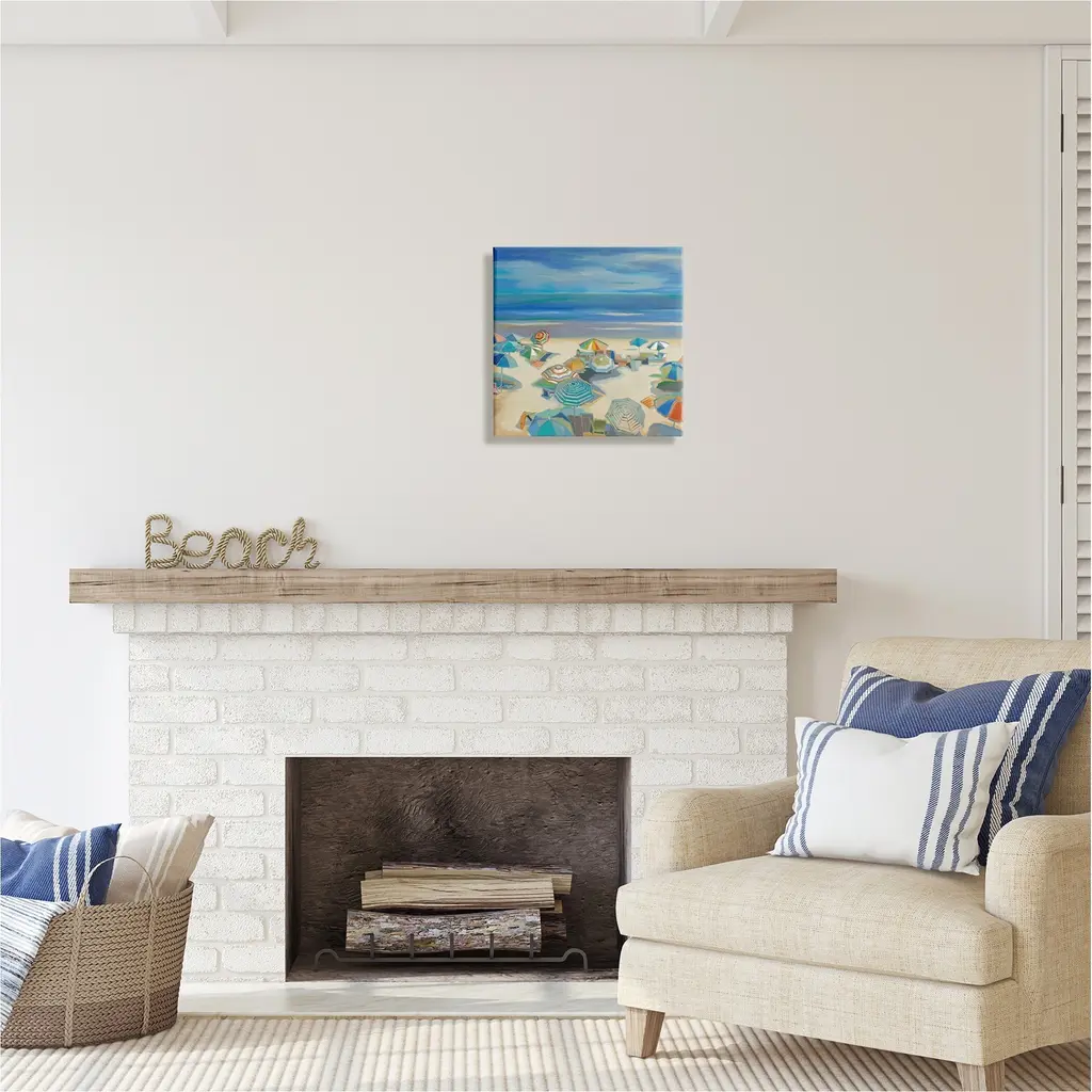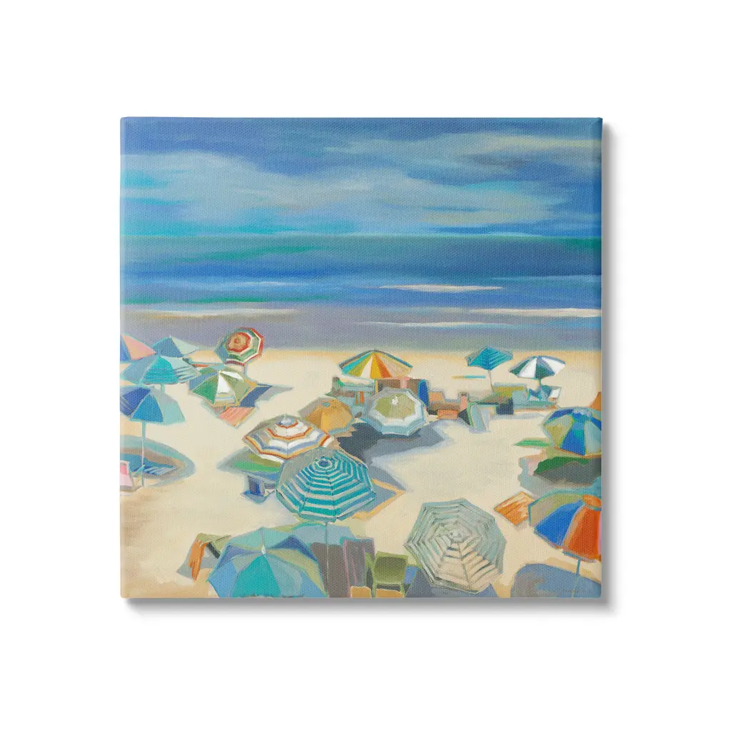 Stupell Beach Umbrellas On Shore Canvas Wall Art Design By Liz Jardine - 17 X 17