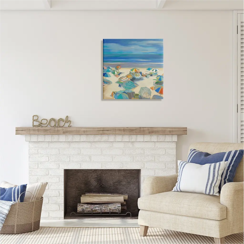 Stupell Beach Umbrellas On Shore Canvas Wall Art Design By Liz Jardine - 24 X 24