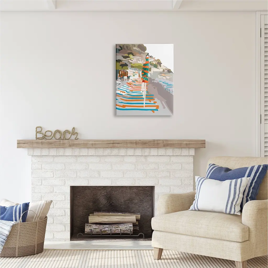 We create our stretched canvas to the highest standards. Using only the highest quality inks and canvas on Mimaki printers, we hand-cut and stretch each piece over a 1.5-inch thick wooden frame for hanging. As a result, the art comes ready to hang on the sturdy ledge with no installation required. Stupell Wall Art is made in the USA.Features: Dimensions: 16 x 1.5 x 20 InchesStretched Canvas Sizes Include Standard: 16 x 1.5 x 20 Large: 20 x 1.5 x 30 X-Large: 30 x 1.5 x 40 Oversized: 36 x 1.5 x 48Wall Art is Ready to Hang with Hardware Free Hanging. No installation required. For Easy Set Up Lean or Layer Artwork on Shelf or Against Wall.Our stretched canvas is created with the highest standards. We use only the highest quality inks and canvas on our in house Mimaki printers, and then hand cut and stretch each piece over a 1.5 inch thick wooden frame for hanging. Made In USA.Artwork Relates To: Summer, Sky, Beach, Coast, Sea, Shoreline, Water, Scenery, Beach UmbrellaDesign by Amelia Noyes