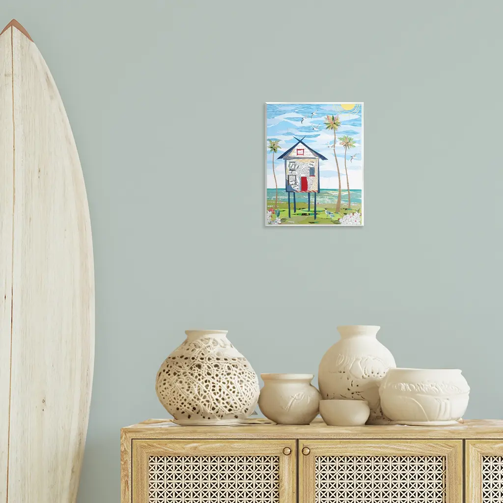 Our wall plaques start as high-quality lithograph prints mounted on durable 0.5-inch thick MDF wood. Each piece is hand finished and comes with a fresh layer of white foil on the sides to give it a crisp, clean look. Plaques arrive ready to hang without installation and come with removable plastic corners to keep them from damage in transit. Stupell Wall Art is made in the USA.Features: Dimensions: 11 x 0.5 x 14 InchesWall Art is Ready to Hang with Hardware Free Hanging. No installation required. For Easy Set Up Lean or Layer Artwork on Shelf or Against Wall.All of our wall plaques start off as high quality lithograph prints that are then mounted on durable 0.5 inch thick MDF wood. Each piece is hand finished and comes with a fresh layer of foil on the sides to give it a crisp clean look. Made In USA.Artwork Relates To: Hut, Nature, Rural, Shelter, Painting, Animal, Bird, Sea, Water, Summer, Plant, Tree, Tropical, Vegetation, BeachDesign by Jennifer Peck