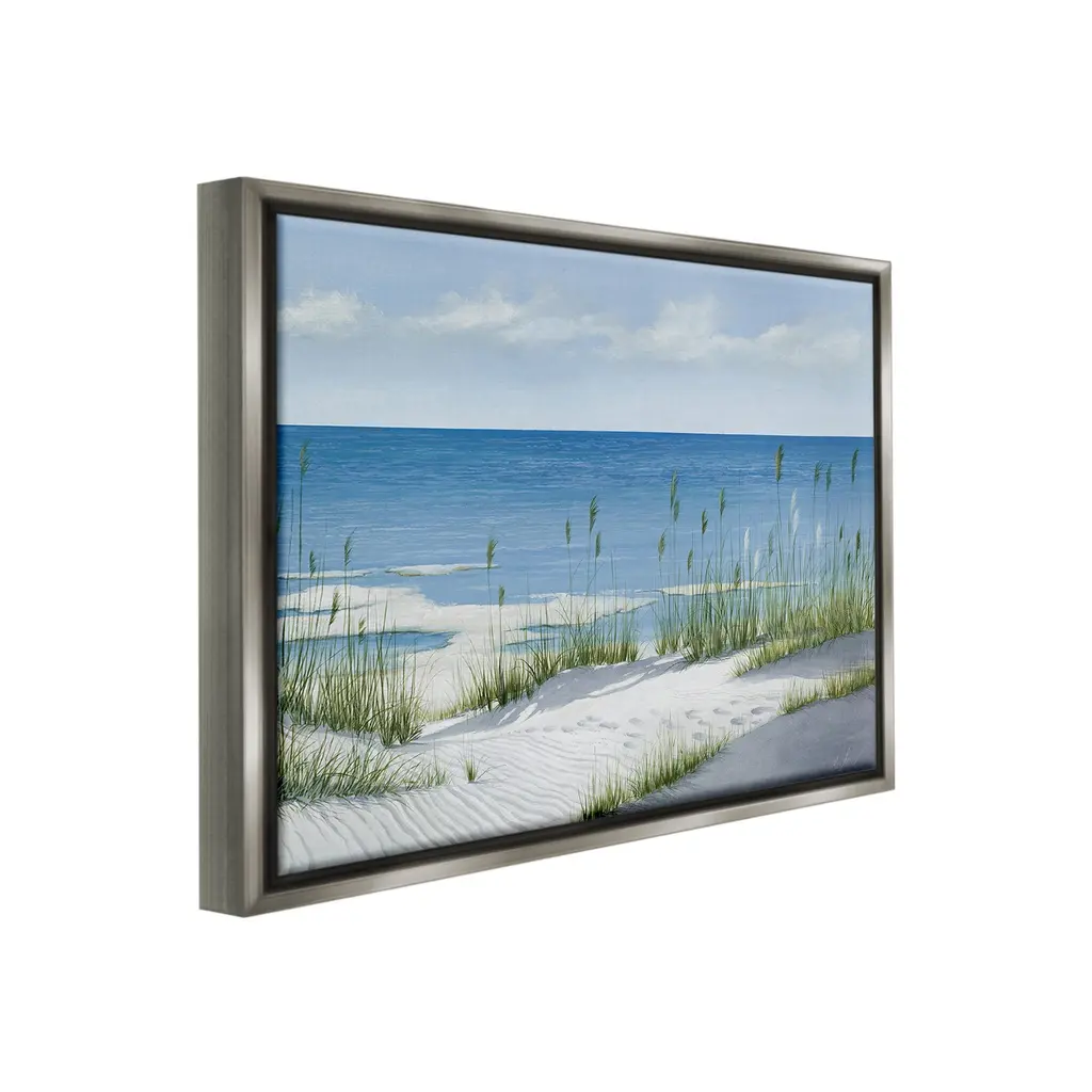 Elevate your home or office to the next level with Stupell Framed Floating Canvas Wall Art. Our premium hand-stretched canvas is mounted securely into a sturdy lightweight frame. The museum-style gap between the wrapped canvas and the box frame gives the illusion of floating artwork. Stupell Wall Art is made in the USA.Features: Dimensions: 21 x 1.7 x 17 Frame, 20 x 1.5 x 16 Canvas ArtFloating Frame Canvas Products are available in sizes 21"x17" and 31"x25". All Floating Frame Canvas Products have a 1.7" Depth.Wall Art is Ready to Hang with Hardware Free Hanging. No Installation required. For Easy Set Up Lean or Layer Artwork on Shelf or Against Wall. Artwork is Permently Fixed into the Frame.Our elevated 1.7" Thick Floating Frame is the perfect complement to our canvas style Wall Art. We use only the highest quality inks in house with industry leading printing solutions. Canvas is hand stretched over a durable wood foundation and then mounted securly into a Modern Box Frame. Made in the USA.Artwork Relates To: Beach, Coast, Sea, Shoreline, Nautical, Shore, Reeds, LandscapeDesign by Max Maxx