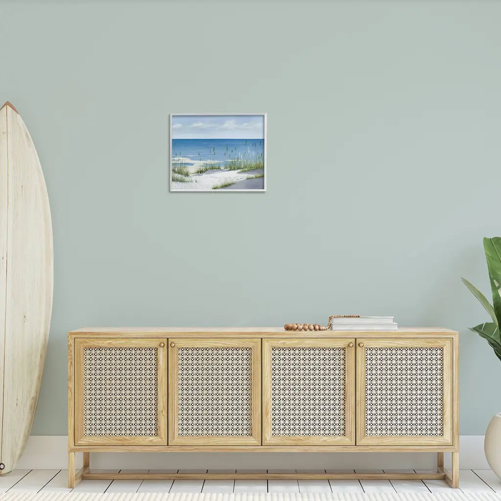 Add dimension to any room with our textured Framed Giclee Artwork. Our framed artwork is securely mounted into a 1.5-inch thick wood grain frame and ready to hang. Frames are available in three alluring styles: black, gray farmhouse and white. In addition, you should check out our oversized options if you want a statement piece. Stupell Wall Art is made in the USA.Features: Dimensions: 14 x 1.5 x 11 FramedFramed Giclee Products are available in the sizes 14"x11", 20"x16" or 30"x24". All Framed Giclee Products have a 1.5" Depth. Wall Art is Ready to Hang with Hardware Free Hanging. No installation required. For Easy Set Up Lean or Layer Artwork on Shelf or Against Wall.Our giclée prints are carefully mounted on a durable MDF backing, and then perfectly finished in a 1.5 inch thick woodgrain frame. Mounted frame colors include black, gray farmhouse and white. Made In USA.Artwork Relates To: Beach, Coast, Sea, Shoreline, Nautical, Shore, Reeds, LandscapeDesign by Max Maxx
