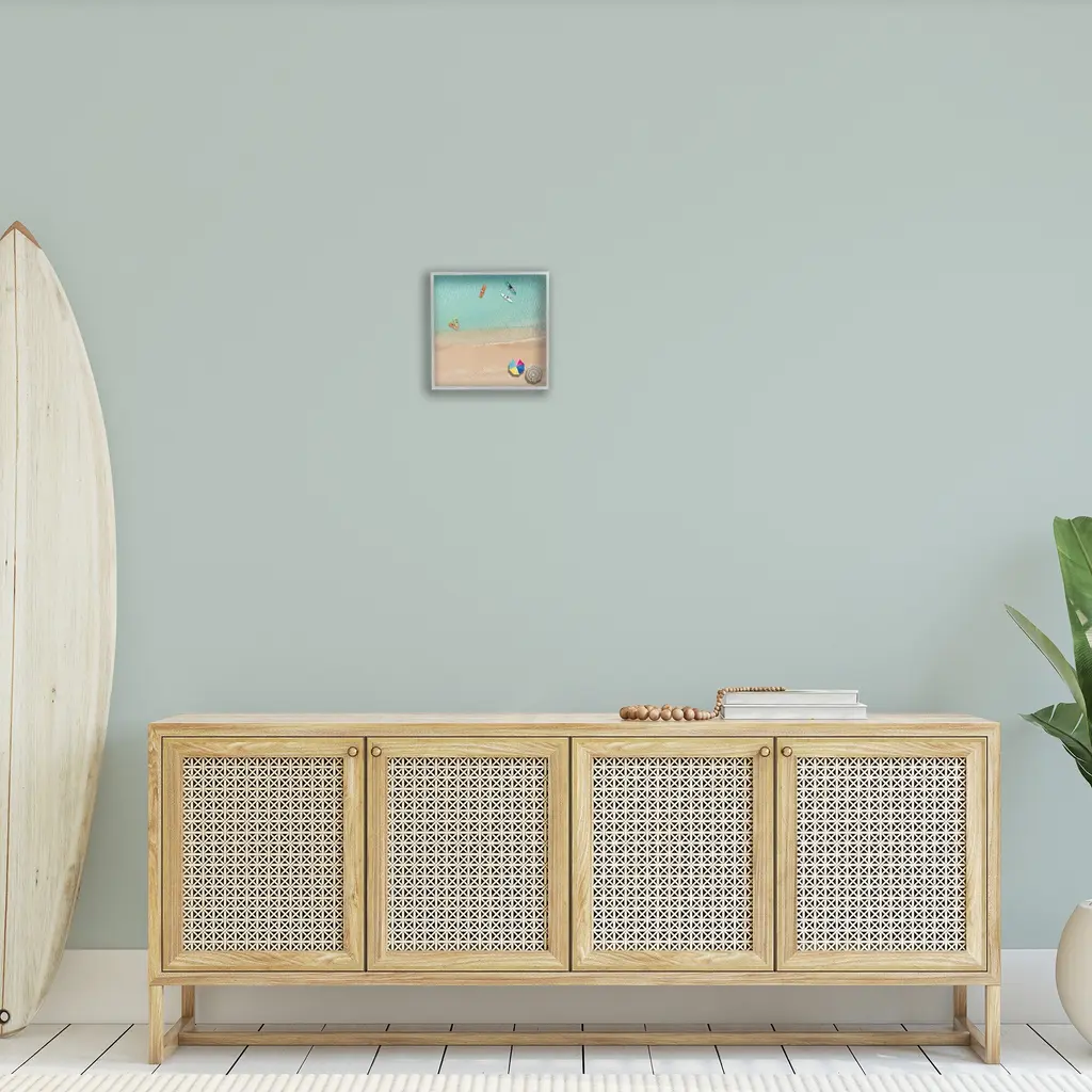 Stupell Beachgoers Aerial View Framed Giclee Art Design By Katrina Craven - 12 X 12 - Grey