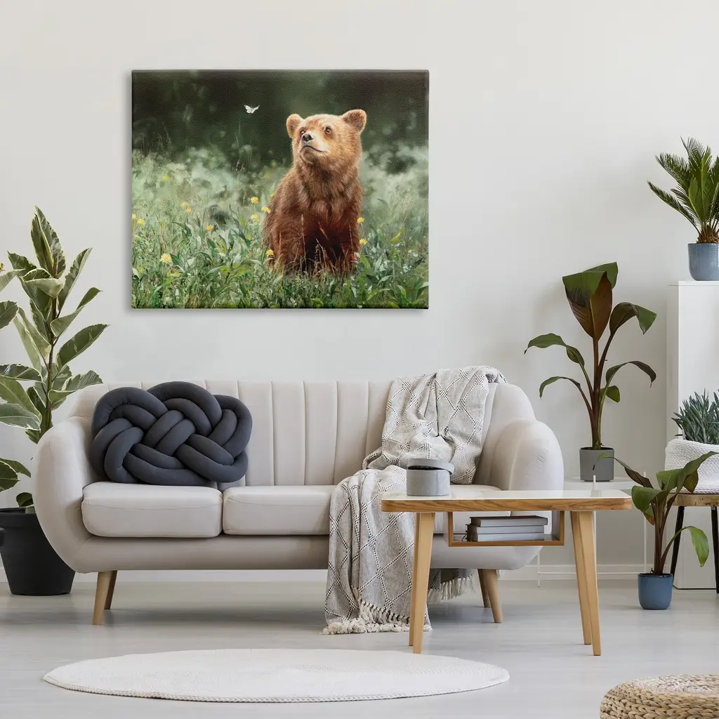 Stupell Bear & Butterfly In Meadow Canvas Wall Art Design By Mark Kelso - 48 X 36