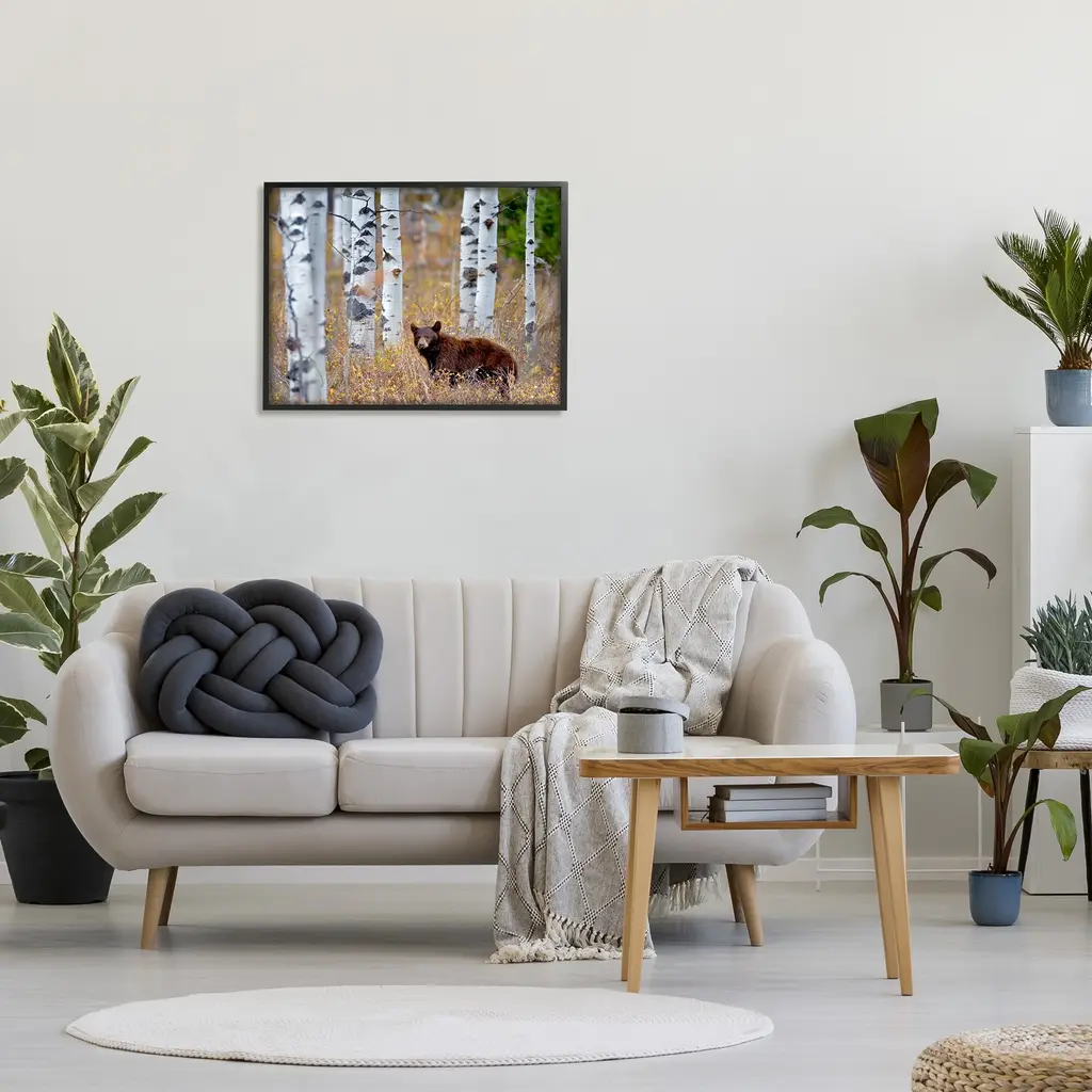 Add dimension to any room with our textured Framed Giclee Artwork. Our framed artwork is securely mounted into a 1.5-inch thick wood grain frame and ready to hang. Frames are available in three alluring styles: black, gray farmhouse and white. In addition, you should check out our oversized options if you want a statement piece. Stupell Wall Art is made in the USA.Features: Dimensions: 14 x 1.5 x 11 FramedFramed Giclee Sizes Include Standard: 14 x 1.5 x 11 Large: 20 x 1.5 x 16 Oversized: 30 x 1.5 x 24Wall Art is Ready to Hang - No Installation or Hardware Needed. For Easy Set Up Lean or Layer Artwork on Shelf or Against Wall.Our giclée prints are carefully mounted on a durable MDF backing, and then perfectly finished in a 1.5 inch thick woodgrain frame. Mounted frame colors include black, gray farmhouse and white. Made In USA.Artwork Relates To: Plant, Tree, Animal, Bear, Mammal, Wildlife, Birch, Black Bear, Nature, Woodland, Grove, Brown Bear, PhotographyDesign by Dennis Frates
