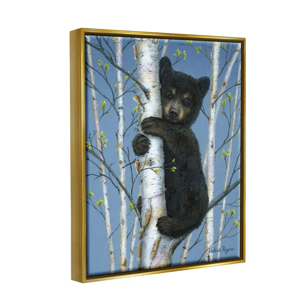 Stupell Bear Cub Climbing Birch Tree Framed Floater Canvas Wall Art By Valerie Rogers - 24 X 30 - Black
