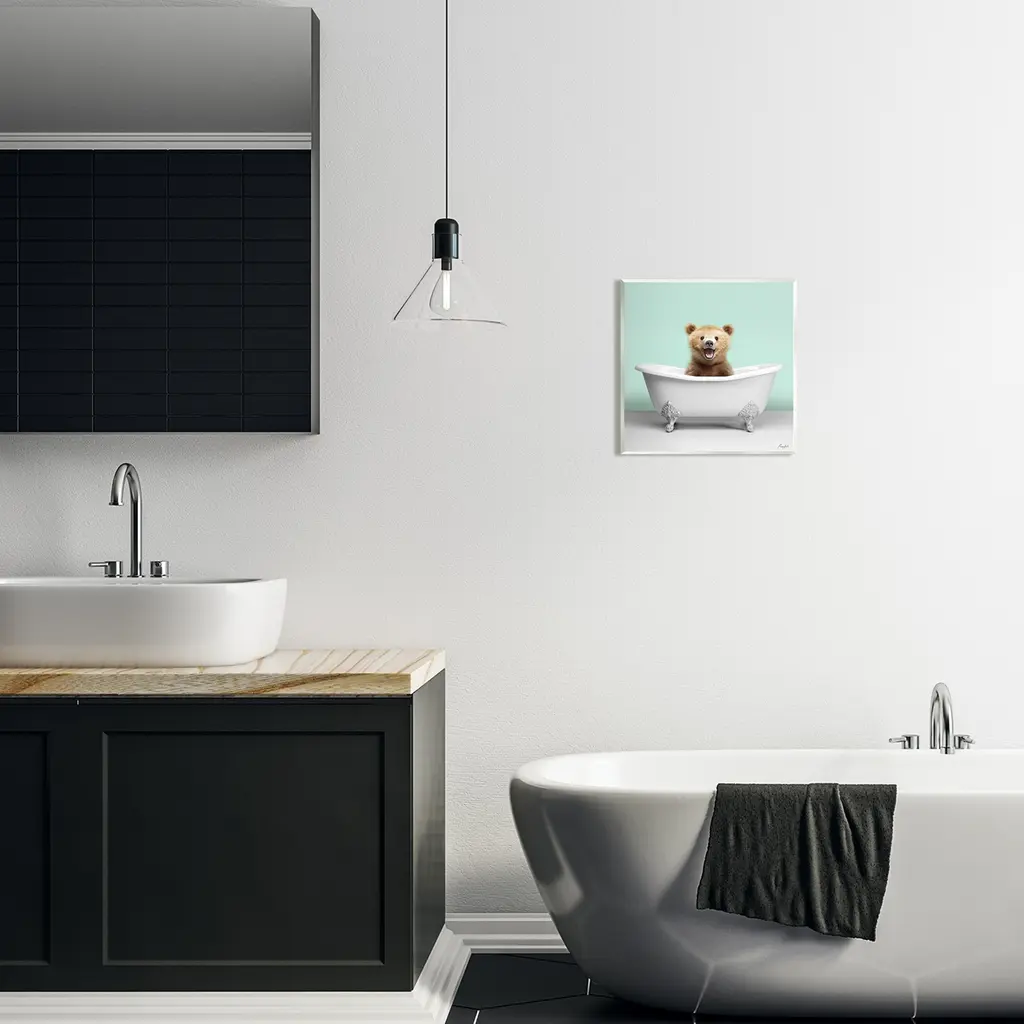Our wall plaques start as high-quality lithograph prints mounted on durable 0.5-inch thick MDF wood. Each piece is hand finished and comes with a fresh layer of white foil on the sides to give it a crisp, clean look. Plaques arrive ready to hang without installation and come with removable plastic corners to keep them from damage in transit. Wall Art is made in the USA.Features: Dimensions: 12 x 0.5 x 12 InchesWall Art is Ready to Hang with Hardware Free Hanging. No installation required. For Easy Set Up Lean or Layer Artwork on Shelf or Against Wall.All of our wall plaques start off as high quality lithograph prints that are then mounted on durable 0.5 inch thick MDF wood. Each piece is hand finished and comes with a fresh layer of foil on the sides to give it a crisp clean look. Made In USA.Artwork Relates To: Tub, Bathing, Bathtub, Bathroom, Animal, Mammal, Wildlife, BearDesign by Roozbeh
