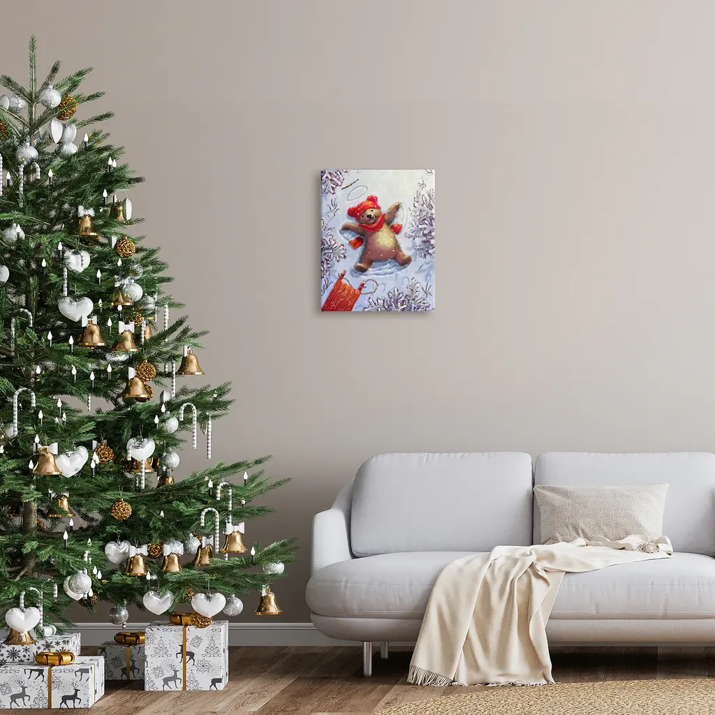 Stupell Bear Cub Snow Angel Sled Canvas Wall Art By Pip Wilson - 24 X 30