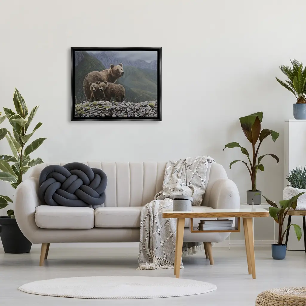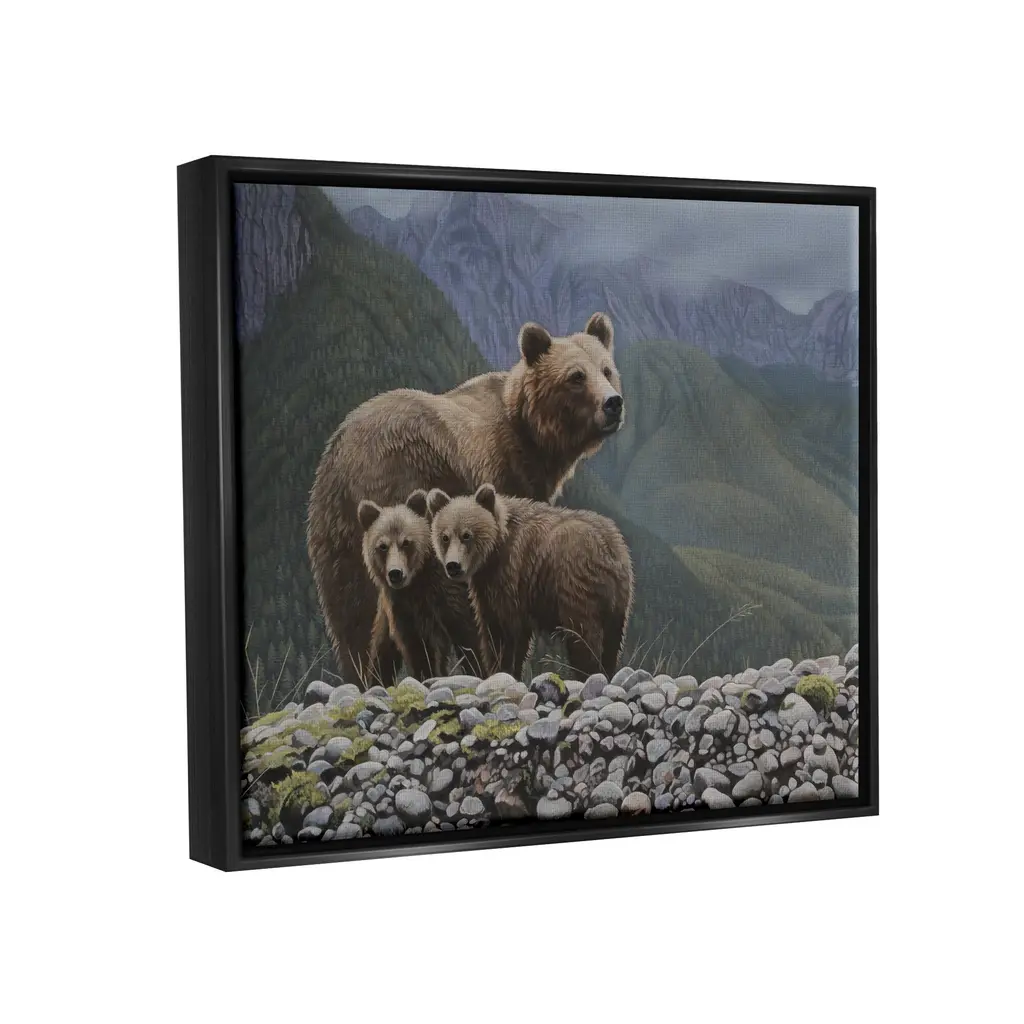 Stupell Bear Family Mountain Landscape Framed Floater Canvas Wall Art Design By Clinton Jammer - 31 X 25 - Black