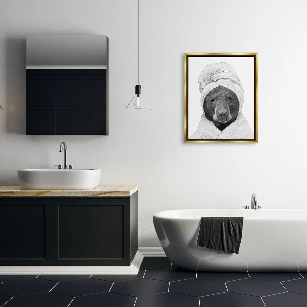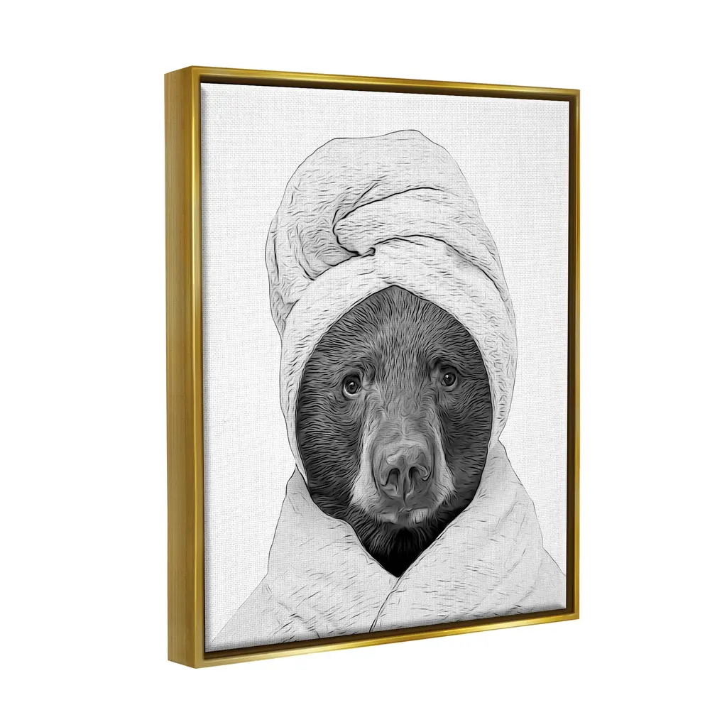 Stupell Bear Hair Towel Funny Animal Framed Floater Canvas Wall Art By Annalisa Latella - 24 X 30 - Gold