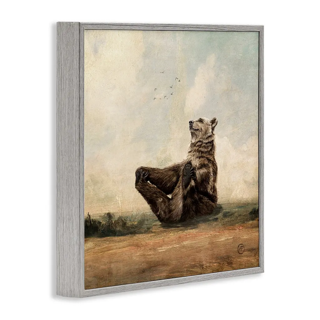 Stupell Bear Holding Paws Staring Sunset Fun Animal Portrait Framed Wall Art, Design By Paula Belle Flores - Brown - 12 X 12 - Grey