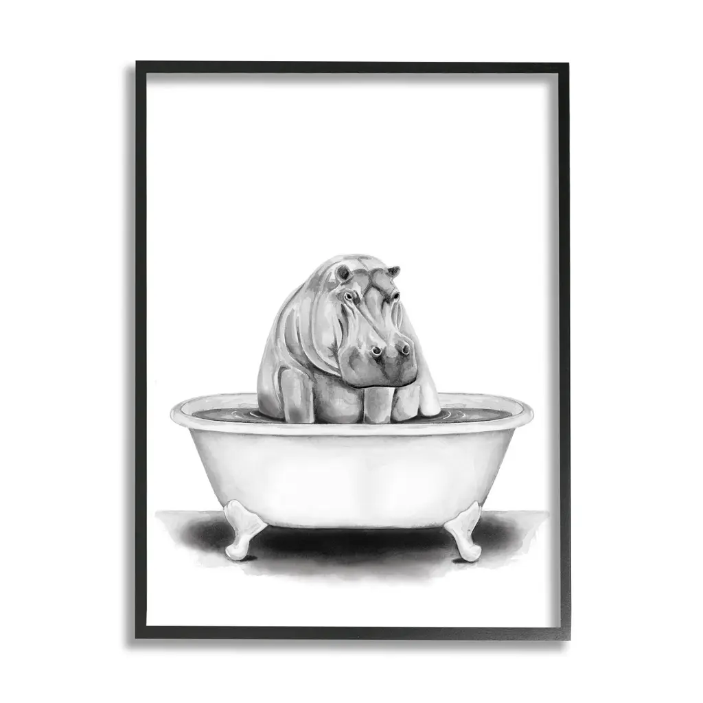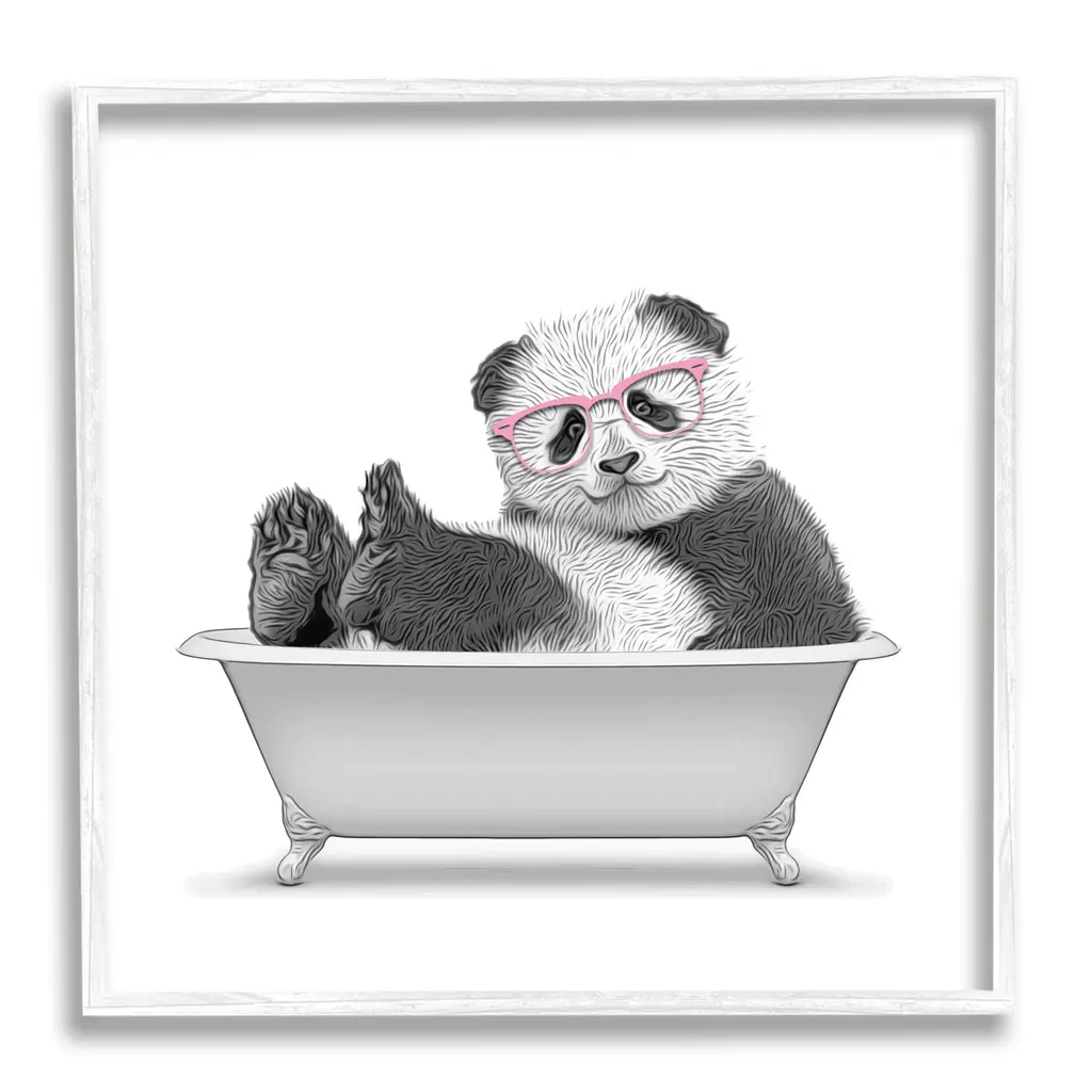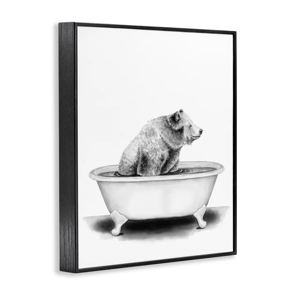 Stupell Bear In A Tub Funny Animal Bathroom Drawing Framed Wall Art - 11 X 14 - Black