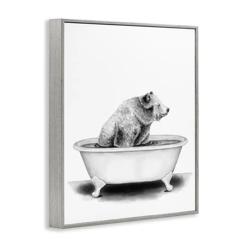Stupell Bear In A Tub Funny Animal Bathroom Drawing Framed Wall Art - 24 X 30