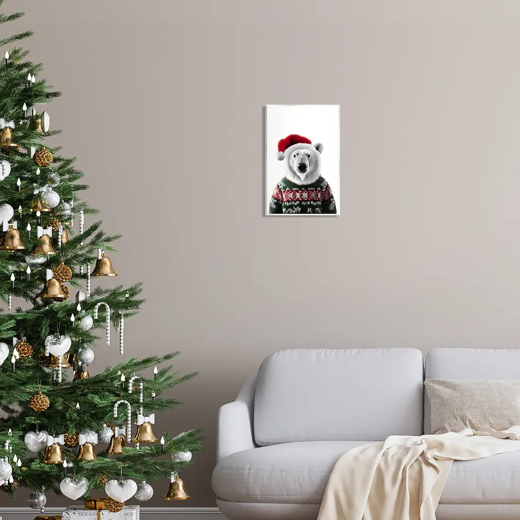 Our wall plaques start as high-quality lithograph prints mounted on durable 0.5-inch thick MDF wood. Each piece is hand finished and comes with a fresh layer of white foil on the sides to give it a crisp, clean look. Plaques arrive ready to hang without installation and come with removable plastic corners to keep them from damage in transit. Stupell Industries Wall Art is made in the USA.Features: Dimensions: 10 x 0.5 x 15 InchesWall Plaque Sizes Include Standard: 10 x 0.5 x 15 Oversized: 13 x 0.5 x 19Wall Art is Ready to Hang with Hardware Free Hanging. No installation required. For Easy Set Up Lean or Layer Artwork on Shelf or Against Wall.All of our wall plaques start off as high quality lithograph prints that are then mounted on durable 0.5 inch thick MDF wood. Each piece is hand finished and comes with a fresh layer of foil on the sides to give it a crisp clean look. Made In USA.Artwork Relates To: Glasses, Animal, Holiday, Christmas, Santa Hat, Mammal, Wildlife, Polar BearDesign by Annalisa Latella