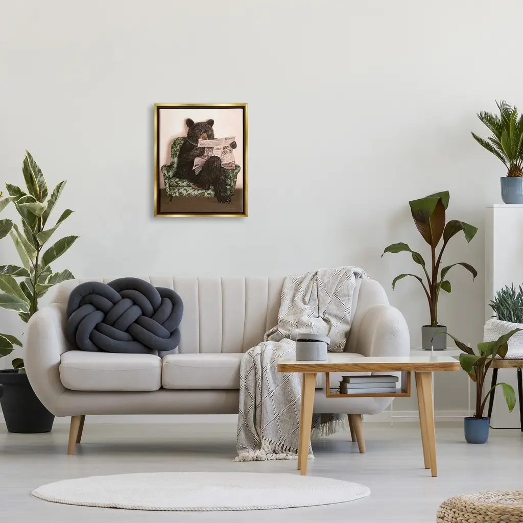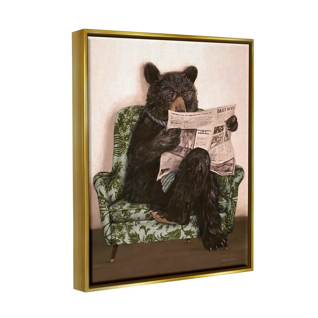 Elevate your home or office to the next level with Stupell Framed Floating Canvas Wall Art. Our premium hand-stretched canvas is mounted securely into a sturdy lightweight frame. The museum-style gap between the wrapped canvas and the box frame gives the illusion of floating artwork. Stupell Wall Art is made in the USA.Features: Dimensions: 17 x 1.7 x 21 Frame, 16 x 1.5 x 20 Canvas ArtFloating Frame Sizes Include Standard: 17 x 1.7 x 21 Oversized: 25 x 1.7 x 31Wall Art is Ready to Hang with Hardware Free Hanging. No installation required. For Easy Set Up Lean or Layer Artwork on Shelf or Against Wall.Our elevated 1.7" Thick Floating Frame is the perfect complement to our canvas style Wall Art. We use only the highest quality inks in house with industry leading printing solutions. Canvas is hand stretched over a durable wood foundation and then mounted securly into a Modern Box Frame. Made in the USA.Artwork Relates To: Couch, Animal, Bear, Mammal, Wildlife, NewspaperDesign by Kamdon Kreations