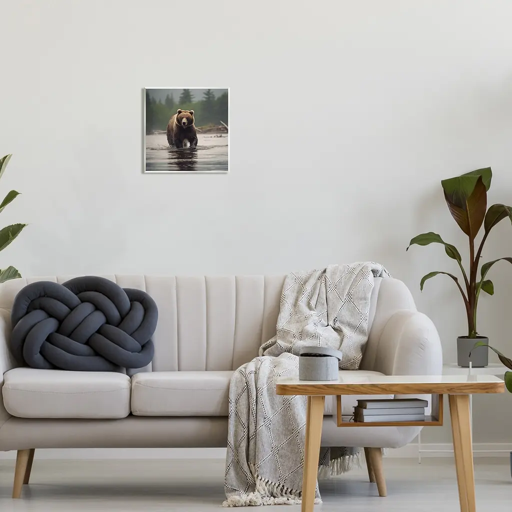 Our wall plaques start as high-quality lithograph prints mounted on durable 0.5-inch thick MDF wood. Each piece is hand finished and comes with a fresh layer of white foil on the sides to give it a crisp, clean look. Plaques arrive ready to hang without installation and come with removable plastic corners to keep them from damage in transit. Wall Art is made in the USA.Features: Dimensions: 12 x 0.5 x 12 InchesWall Art is Ready to Hang with Hardware Free Hanging. No installation required. For Easy Set Up Lean or Layer Artwork on Shelf or Against Wall.All of our wall plaques start off as high quality lithograph prints that are then mounted on durable 0.5 inch thick MDF wood. Each piece is hand finished and comes with a fresh layer of foil on the sides to give it a crisp clean look. Made In USA.Artwork Relates To: Animal, Bear, Mammal, Wildlife, Brown Bear, LakeDesign by Lazar Studio