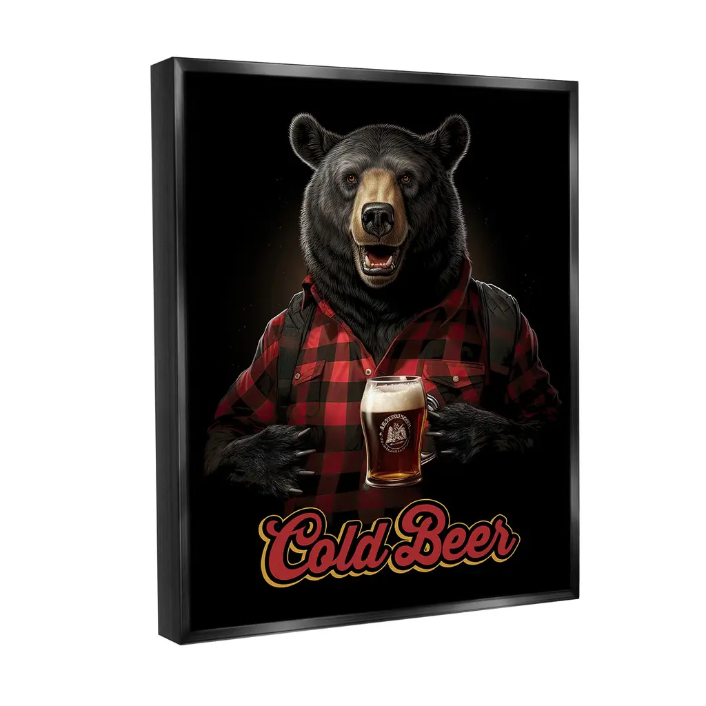 Elevate your home or office to the next level with Stupell Framed Floating Canvas Wall Art. Our premium hand-stretched canvas is mounted securely into a sturdy lightweight frame. The museum-style gap between the wrapped canvas and the box frame gives the illusion of floating artwork. Stupell Wall Art is made in the USA.Features: Dimensions: 17 x 1.7 x 21 Frame, 16 x 1.5 x 20 Canvas ArtFloating Frame Canvas Products are available in sizes 17"x21" and 25"x31". All Floating Frame Canvas Products have a 1.7" Depth.Wall Art is Ready to Hang with Hardware Free Hanging. No Installation required. For Easy Set Up Lean or Layer Artwork on Shelf or Against Wall. Artwork is Permently Fixed into the Frame.Our elevated 1.7" Thick Floating Frame is the perfect complement to our canvas style Wall Art. We use only the highest quality inks in house with industry leading printing solutions. Canvas is hand stretched over a durable wood foundation and then mounted securly into a Modern Box Frame. Made in the USA.Artwork Relates To: Alcohol, Beer, Beverage, Lager, Animal, Bear, Mammal, Wildlife, Mancave, Woodland, Cold BeerDesign by Jim Baldwin