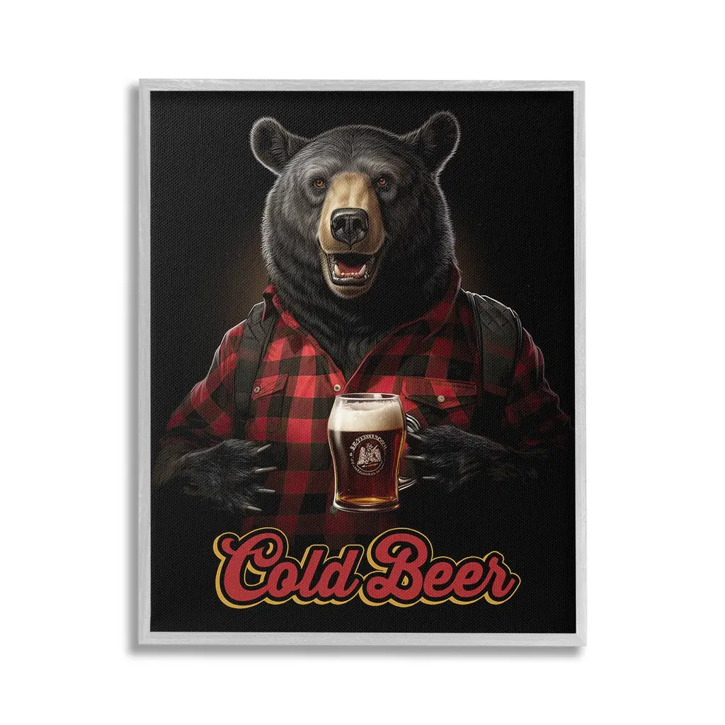Add dimension to any room with our textured Framed Giclee Artwork. Our framed artwork is securely mounted into a 1.5-inch thick wood grain frame and ready to hang. Frames are available in three alluring styles: black, gray farmhouse and white. In addition, you should check out our oversized options if you want a statement piece. Stupell Wall Art is made in the USA.Features: Dimensions: 11 x 1.5 x 14 FramedFramed Giclee Products are available in the sizes 11"x14", 16"x20" or 24"x30". All Framed Giclee Products have a 1.5" Depth. Wall Art is Ready to Hang with Hardware Free Hanging. No installation required. For Easy Set Up Lean or Layer Artwork on Shelf or Against Wall.Our giclée prints are carefully mounted on a durable MDF backing, and then perfectly finished in a 1.5 inch thick woodgrain frame. Mounted frame colors include black, gray farmhouse and white. Made In USA.Artwork Relates To: Alcohol, Beer, Beverage, Lager, Animal, Bear, Mammal, Wildlife, Mancave, Woodland, Cold BeerDesign by Jim Baldwin