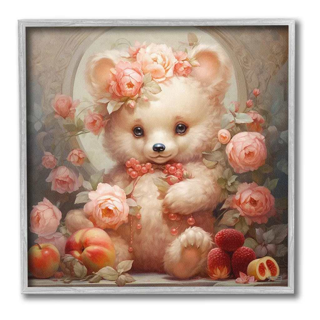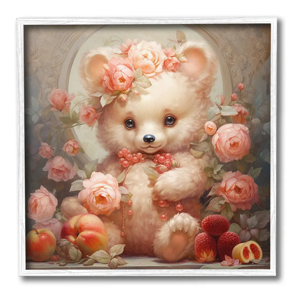 Add dimension to any room with our textured Framed Giclee Artwork. Our framed artwork is securely mounted into a 1.5-inch thick wood grain frame and ready to hang. Frames are available in three alluring styles: black, gray farmhouse and white. In addition, you should check out our oversized options if you want a statement piece. Stupell Wall Art is made in the USA.Features: Dimensions: 12 x 1.5 x 12 FramedFramed Giclee Product Sizes Include 12"x12", 17"x17", and 24"x24". Framed Giclee Products have a 1.5" Depth. Wall Art is Ready to Hang with Hardware Free Hanging. No installation required. For Easy Set Up Lean or Layer Artwork on Shelf or Against Wall.Our giclée prints are carefully mounted on a durable MDF backing, and then perfectly finished in a 1.5 inch thick woodgrain frame. Mounted frame colors include black, gray farmhouse and white. Made In USA.Artwork Relates To: Animal, Mammal, Apple, Food, Fruit, Strawberry, Flower, Teddy Bear, Bear, Rose, Peony, Floral, VintageDesign by RB