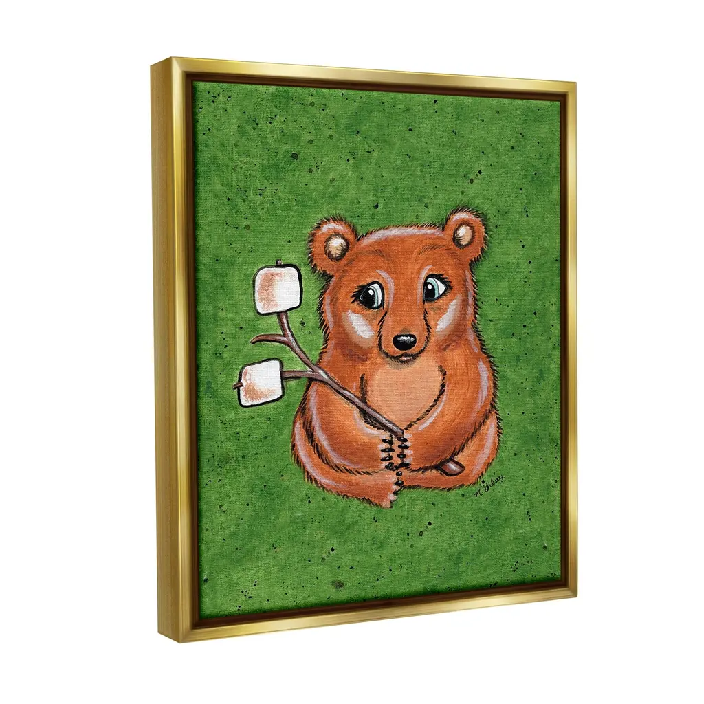 Elevate your home or office to the next level with Stupell Framed Floating Canvas Wall Art. Our premium hand-stretched canvas is mounted securely into a sturdy lightweight frame. The museum-style gap between the wrapped canvas and the box frame gives the illusion of floating artwork. Stupell Wall Art is made in the USA.Features: Dimensions: 17 x 1.7 x 21 Frame, 16 x 1.5 x 20 Canvas ArtFloating Frame Canvas Products are available in sizes 17"x21" and 25"x31". All Floating Frame Canvas Products have a 1.7" Depth.Wall Art is Ready to Hang with Hardware Free Hanging. No Installation required. For Easy Set Up Lean or Layer Artwork on Shelf or Against Wall. Artwork is Permently Fixed into the Frame.Our elevated 1.7" Thick Floating Frame is the perfect complement to our canvas style Wall Art. We use only the highest quality inks in house with industry leading printing solutions. Canvas is hand stretched over a durable wood foundation and then mounted securly into a Modern Box Frame. Made in the USA.Artwork Relates To: Animal, Mammal, Wildlife, Grass, Bear, Woodland, S'mores, Marshmallow, ForestDesign by Michelle Gilsey
