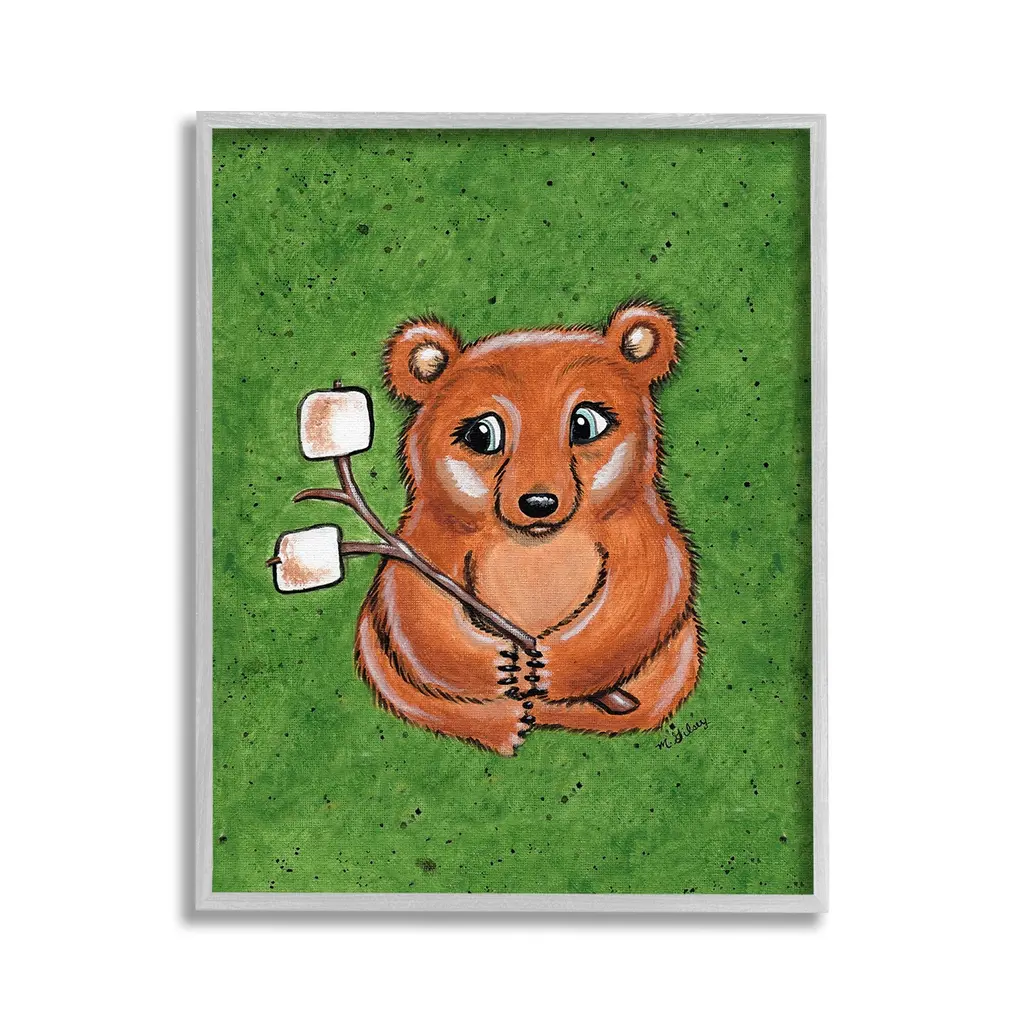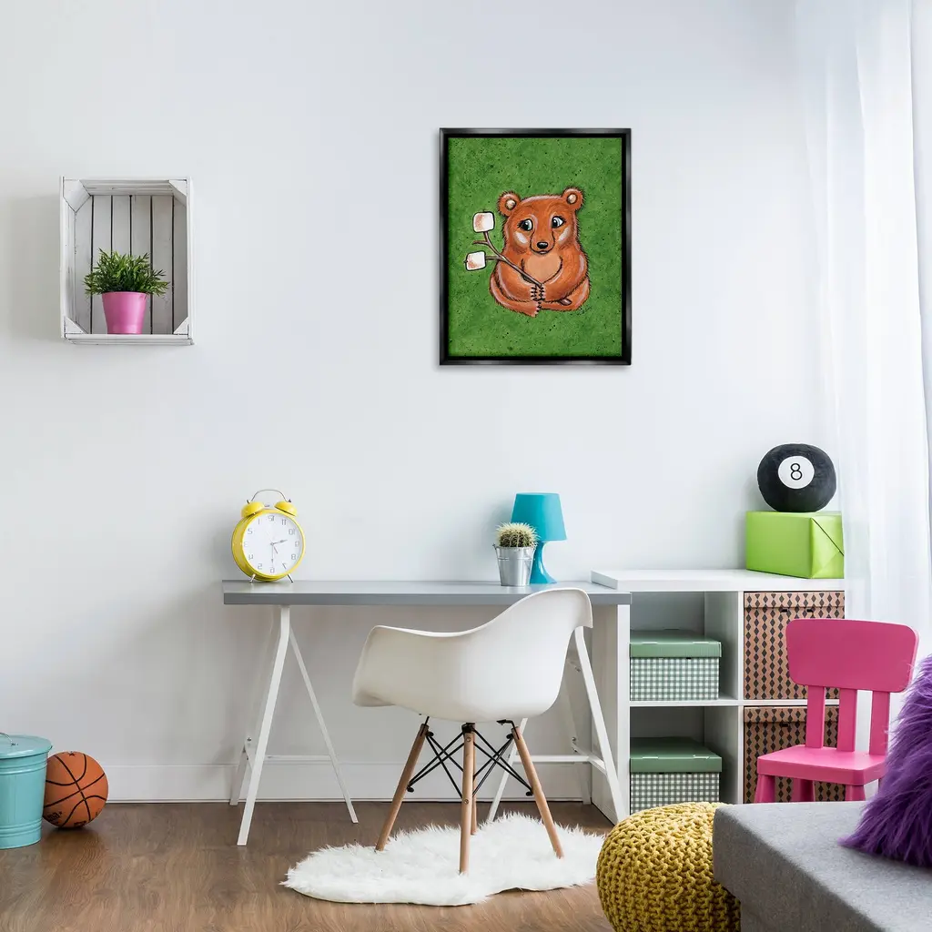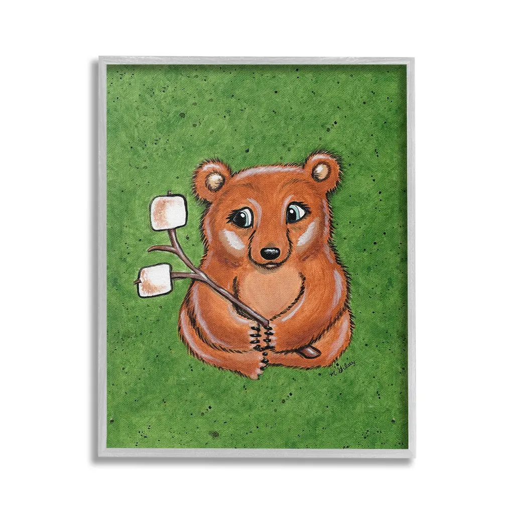 Elevate your home or office to the next level with Stupell Framed Floating Canvas Wall Art. Our premium hand-stretched canvas is mounted securely into a sturdy lightweight frame. The museum-style gap between the wrapped canvas and the box frame gives the illusion of floating artwork. Stupell Wall Art is made in the USA.Features: Dimensions: 17 x 1.7 x 21 Frame, 16 x 1.5 x 20 Canvas ArtFloating Frame Canvas Products are available in sizes 17"x21" and 25"x31". All Floating Frame Canvas Products have a 1.7" Depth.Wall Art is Ready to Hang with Hardware Free Hanging. No Installation required. For Easy Set Up Lean or Layer Artwork on Shelf or Against Wall. Artwork is Permently Fixed into the Frame.Our elevated 1.7" Thick Floating Frame is the perfect complement to our canvas style Wall Art. We use only the highest quality inks in house with industry leading printing solutions. Canvas is hand stretched over a durable wood foundation and then mounted securly into a Modern Box Frame. Made in the USA.Artwork Relates To: Animal, Mammal, Wildlife, Grass, Bear, Woodland, S'mores, Marshmallow, ForestDesign by Michelle Gilsey