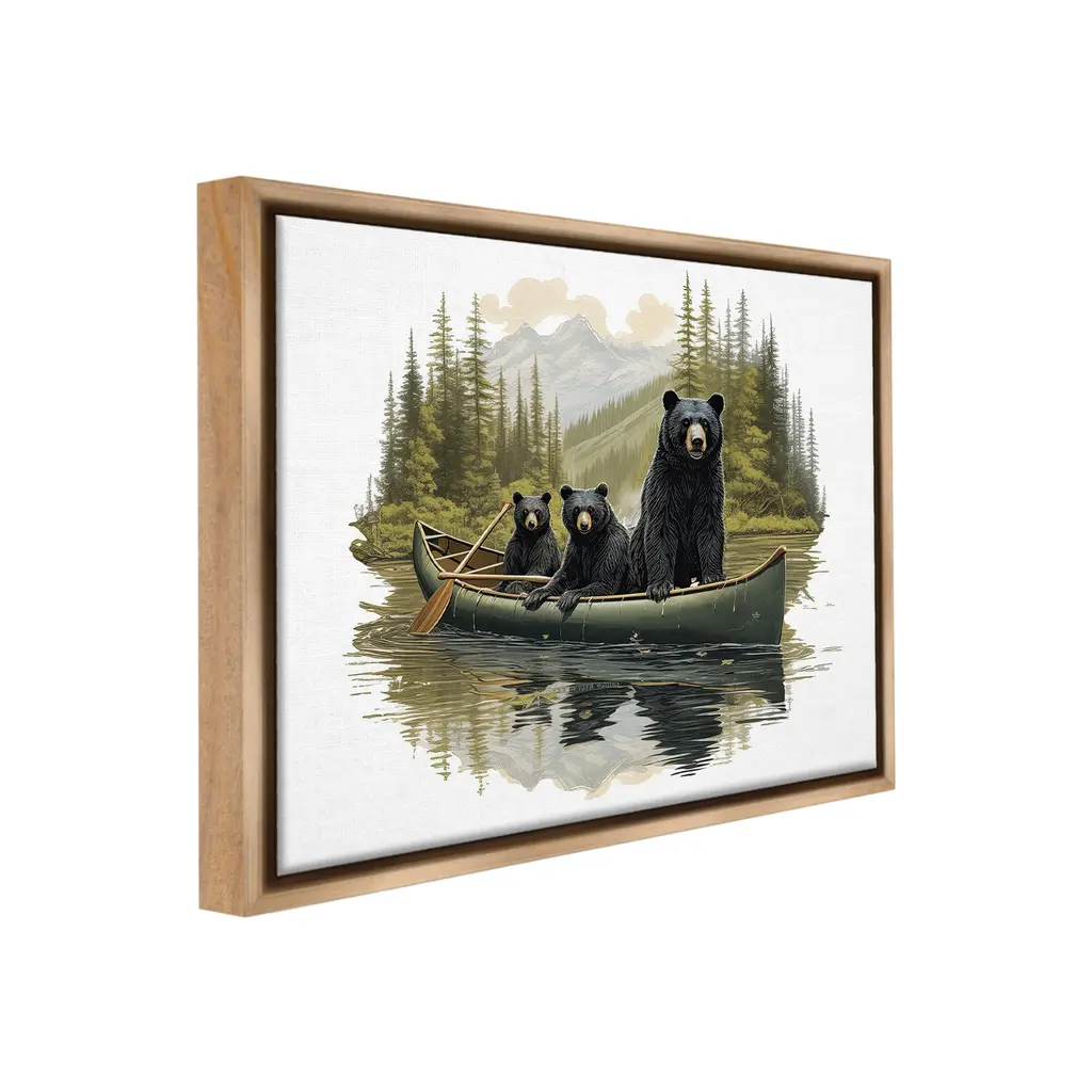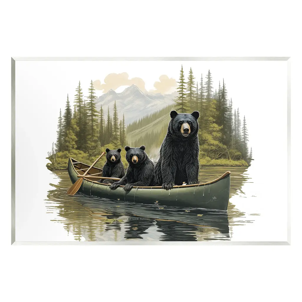 Elevate your home or office to the next level with Stupell Framed Floating Canvas Wall Art. Our premium hand-stretched canvas is mounted securely into a sturdy lightweight frame. The museum-style gap between the wrapped canvas and the box frame gives the illusion of floating artwork. Stupell Wall Art is made in the USA.Features: Dimensions: 21 x 1.7 x 17 Frame, 20 x 1.5 x 16 Canvas ArtFloating Frame Canvas Products are available in sizes 21"x17" and 31"x25". All Floating Frame Canvas Products have a 1.7" Depth.Wall Art is Ready to Hang with Hardware Free Hanging. No Installation required. For Easy Set Up Lean or Layer Artwork on Shelf or Against Wall. Artwork is Permently Fixed into the Frame.Our elevated 1.7" Thick Floating Frame is the perfect complement to our canvas style Wall Art. We use only the highest quality inks in house with industry leading printing solutions. Canvas is hand stretched over a durable wood foundation and then mounted securly into a Modern Box Frame. Made in the USA.Artwork Relates To: Boat, Canoe, Animal, Bear, Mammal, Wildlife, Nature, Woodland, LakeDesign by Jim Baldwin