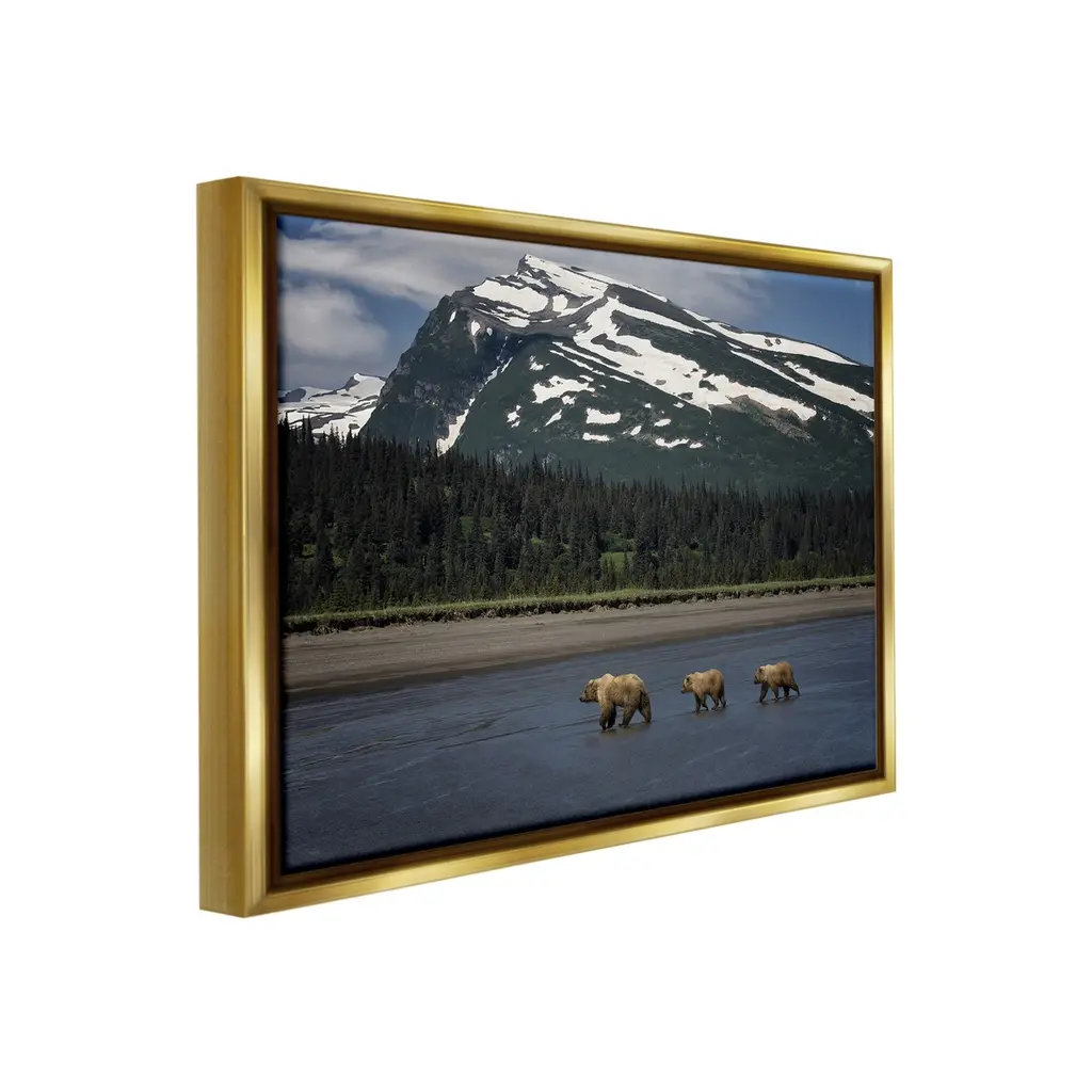 Stupell Bears Crossing Icy River Framed Floater Canvas Wall Art Design By Phburchett - 21 X 17 - Gold