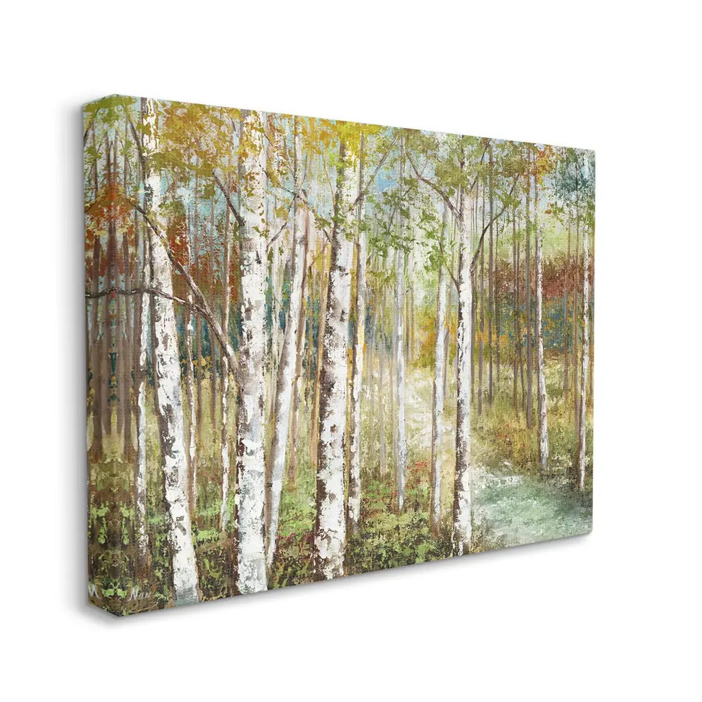 Stupell Beautiful Autumn Birch Grove Stream Painting Canvas Wall Art - 24 X 30