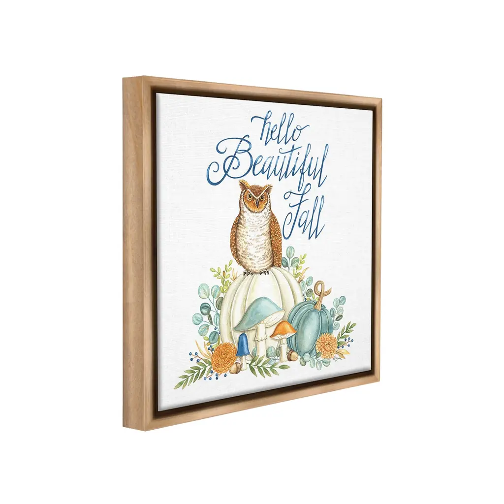 Elevate your home or office to the next level with Stupell Framed Floating Canvas Wall Art. Our premium hand-stretched canvas is mounted securely into a sturdy lightweight frame. The museum-style gap between the wrapped canvas and the box frame gives the illusion of floating artwork. Stupell Wall Art is made in the USA.Features: Dimensions: 18 x 1.7 x 18 Frame, 17 x 1.5 x 17 Canvas ArtFloating Frame Canvas Products are available in sizes 18"x18" and 25"x25". All Floating Frame Canvas Products have a 1.7" Depth.Wall Art is Ready to Hang with Hardware Free Hanging. No Installation required. For Easy Set Up Lean or Layer Artwork on Shelf or Against Wall. Artwork is Permently Fixed into the Frame.Our elevated 1.7" Thick Floating Frame is the perfect complement to our canvas style Wall Art. We use only the highest quality inks in house with industry leading printing solutions. Canvas is hand stretched over a durable wood foundation and then mounted securly into a Modern Box Frame. Made in the USA.Artwork Relates To: Nature, Country, Harvest, Plant, Fall, Autumn, Pumpkin, Phrase, Mushroom, Acorn, Botanical, Bird, Animal, Owl, Hello Beautiful FallDesign by Deb Strain