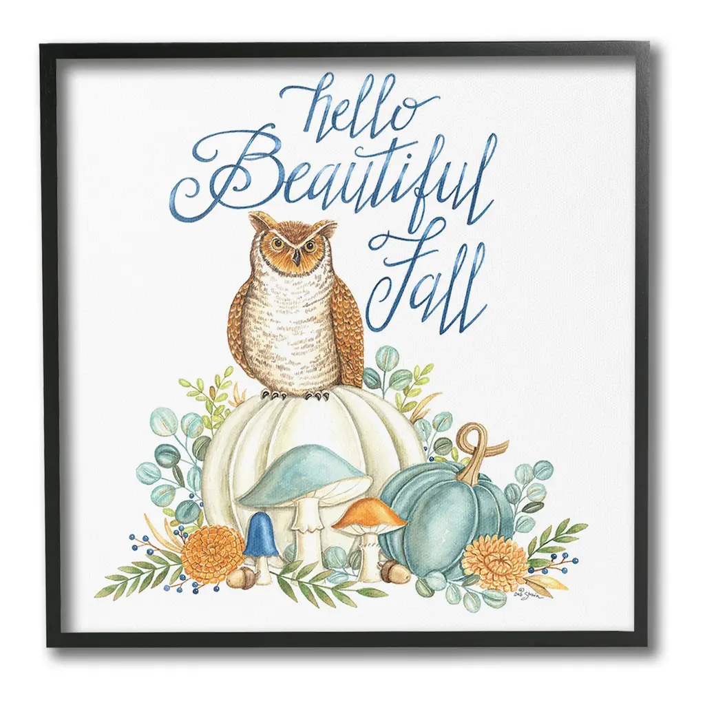 Our wall plaques start as high-quality lithograph prints mounted on durable 0.5-inch thick MDF wood. Each piece is hand finished and comes with a fresh layer of white foil on the sides to give it a crisp, clean look. Plaques arrive ready to hang without installation and come with removable plastic corners to keep them from damage in transit. Stupell Wall Art is made in the USA.Features: Dimensions: 12 x 0.5 x 12 InchesWall Art is Ready to Hang with Hardware Free Hanging. No installation required. For Easy Set Up Lean or Layer Artwork on Shelf or Against Wall.All of our wall plaques start off as high quality lithograph prints that are then mounted on durable 0.5 inch thick MDF wood. Each piece is hand finished and comes with a fresh layer of foil on the sides to give it a crisp clean look. Made In USA.Artwork Relates To: Nature, Country, Harvest, Plant, Fall, Autumn, Pumpkin, Phrase, Mushroom, Acorn, Botanical, Bird, Animal, Owl, Hello Beautiful FallDesign by Deb Strain
