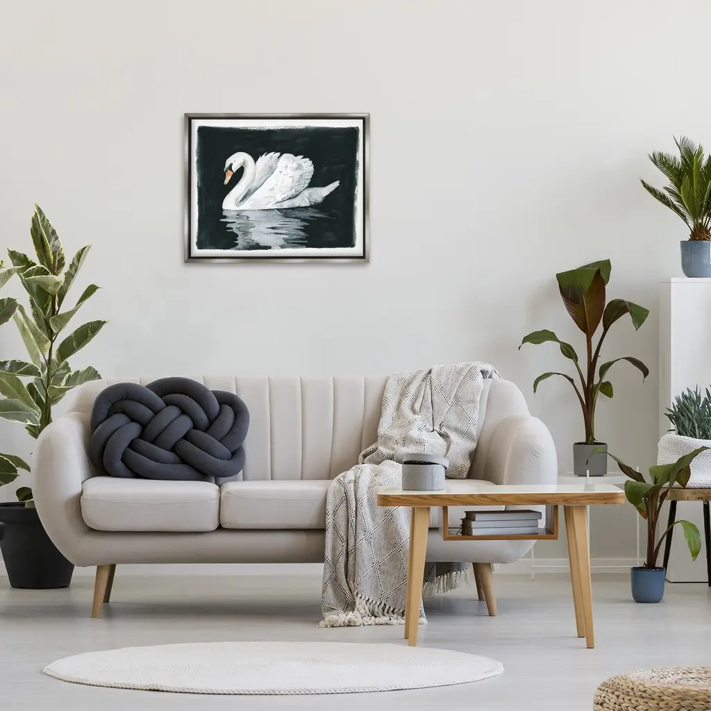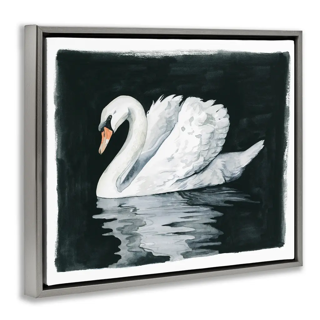 Elevate your home or office to the next level with Stupell Framed Floating Canvas Wall Art. Our premium hand stretched canvas is mounted securly into a sturdy lightweight frame. The museum style gap between wrapped canvas and box frame gives the illusion of floating artwork. Features: Dimensions: 21 x 1.7 x 17 Frame, 20 x 1.5 x 16 Canvas ArtFloating Frame Sizes Include Standard: 21 x 1.7 x 17 Oversized: 31 x 1.7 x 25Wall Art is Ready to Hang - No Installation or Hardware Needed. For Easy Set Up Lean or Layer Artwork on Shelf or Against Wall.Our elevated 1.7" Thick Floating Frame is the perfect complement to our canvas style Wall Art. We use only the highest quality inks in house with industry leading printing solutions. Canvas is hand stretched over a durable wood foundation and then mounted securly into a Modern Box Frame. Made in the USA.Artwork Relates To: Swan, Animal, Bird, Reflection, Lake, WaterDesign by Grace Popp