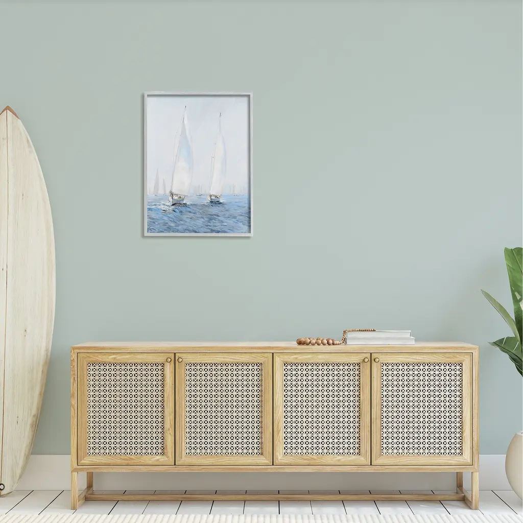 Stupell Beautiful White Sailboats Drifting Ocean Waves Painting Framed Wall Art - Grey - 24 X 30 - Grey