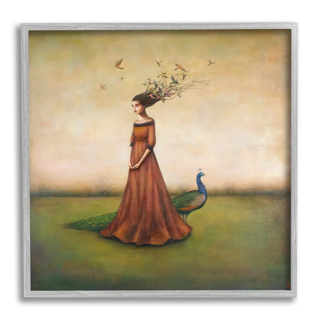 Stupell Beauty And Birds In Her Hair Woman And Peacock Framed Art, 12 X 12, Design By Artist Duy Huynh - Multi-Color - 24 X 24 - Black