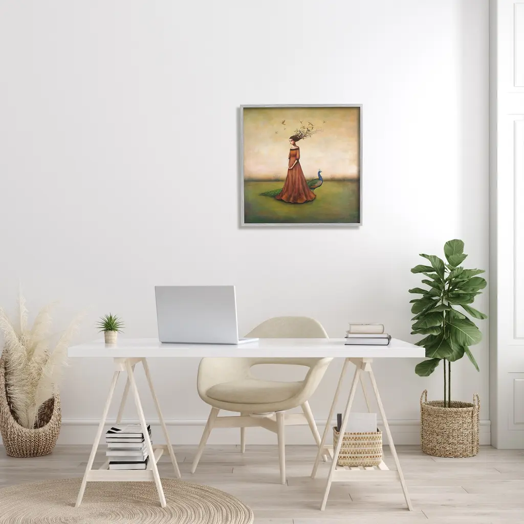 Stupell Beauty And Birds In Her Hair Woman And Peacock Framed Art, 12 X 12, Design By Artist Duy Huynh - Multi-Color - 24 X 24 - Grey