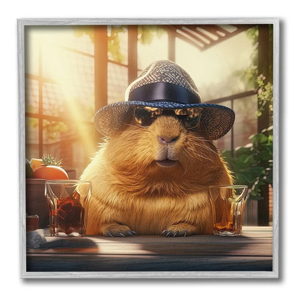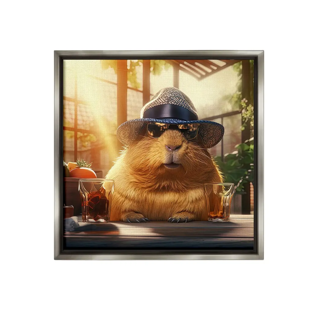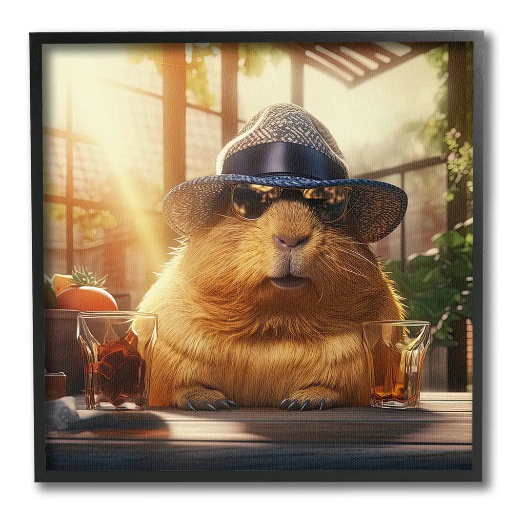 Elevate your home or office to the next level with Stupell Framed Floating Canvas Wall Art. Our premium hand-stretched canvas is mounted securely into a sturdy lightweight frame. The museum-style gap between the wrapped canvas and the box frame gives the illusion of floating artwork. Stupell Wall Art is made in the USA.Features: Dimensions: 18 x 1.7 x 18 Frame, 17 x 1.5 x 17 Canvas ArtFloating Frame Canvas Products are available in sizes 18"x18" and 25"x25". All Floating Frame Canvas Products have a 1.7" Depth.Wall Art is Ready to Hang with Hardware Free Hanging. No Installation required. For Easy Set Up Lean or Layer Artwork on Shelf or Against Wall. Artwork is Permently Fixed into the Frame.Our elevated 1.7" Thick Floating Frame is the perfect complement to our canvas style Wall Art. We use only the highest quality inks in house with industry leading printing solutions. Canvas is hand stretched over a durable wood foundation and then mounted securly into a Modern Box Frame. Made in the USA.Artwork Relates To: Glass, Alcohol, Beer, Beverage, Liquor, Animal, Mammal, Rodent, Nature, Rural, Whisky, Capybara, BeaverDesign by Jim Baldwin