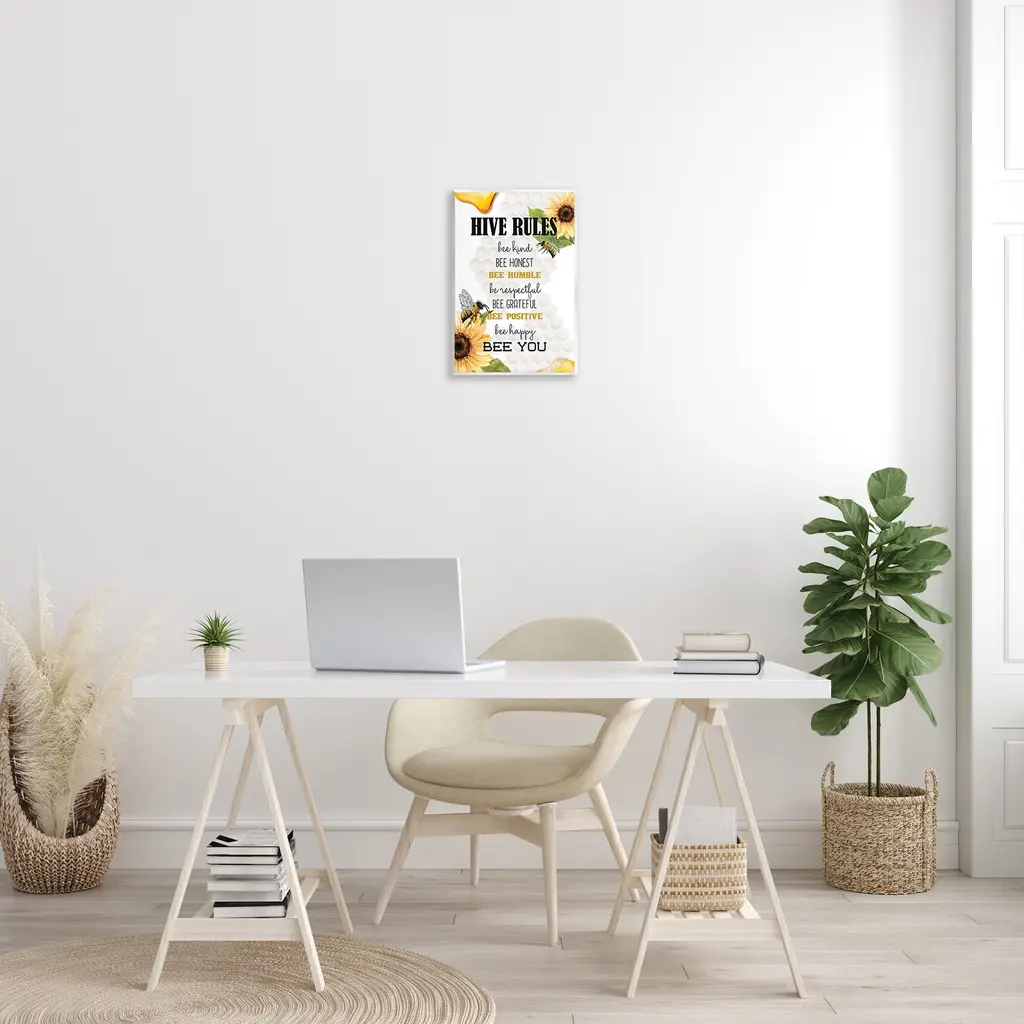 Our wall plaques start as high-quality lithograph prints mounted on durable 0.5-inch thick MDF wood. Each piece is hand finished and comes with a fresh layer of white foil on the sides to give it a crisp, clean look. Plaques arrive ready to hang without installation and come with removable plastic corners to keep them from damage in transit. Stupell Wall Art is made in the USA.Features: Dimensions: 10 x 0.5 x 15 InchesWall Plaque Product Sizes Include 10"x15" and 13"x19". All wall plaque products have a 0.5" Depth. Wall Art is Ready to Hang with Hardware Free Hanging. No installation required. For Easy Set Up Lean or Layer Artwork on Shelf or Against Wall.All of our wall plaques start off as high quality lithograph prints that are then mounted on durable 0.5 inch thick MDF wood. Each piece is hand finished and comes with a fresh layer of foil on the sides to give it a crisp clean look. Made In USA.Artwork Relates To: Animal, Bee, Honey Bee, Insect, Flower, Plant, Sunflower, Daisy, Botanical, Country, Hive Rules, RulesDesign by Kim Allen