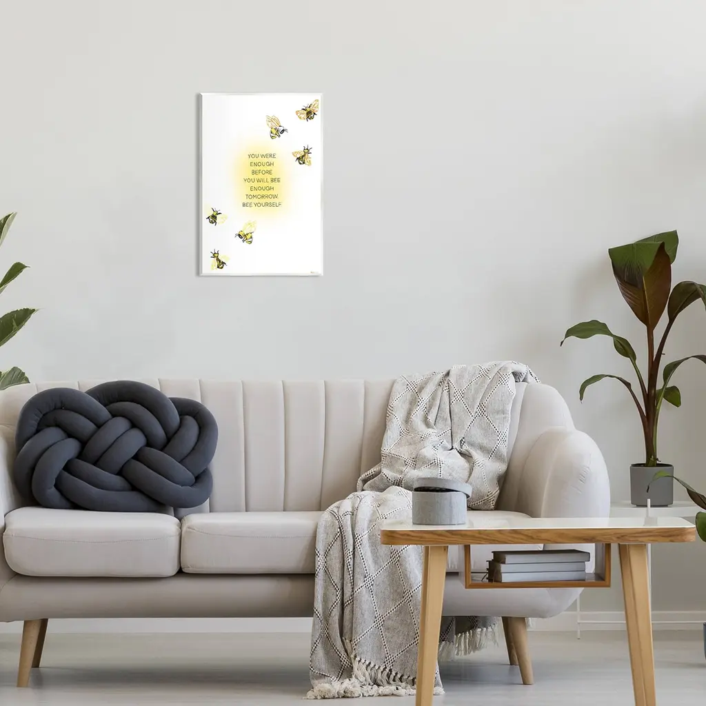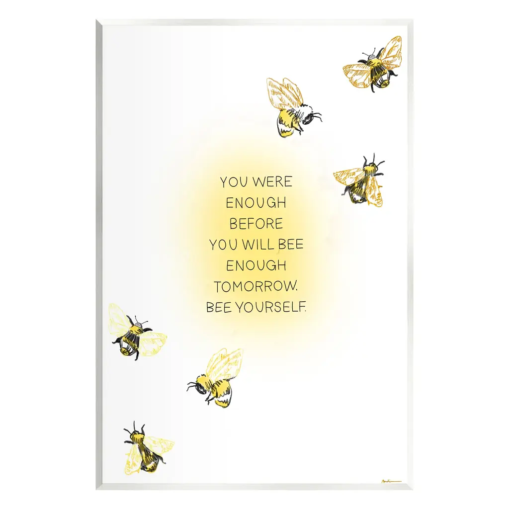 Our wall plaques start as high-quality lithograph prints mounted on durable 0.5-inch thick MDF wood. Each piece is hand finished and comes with a fresh layer of white foil on the sides to give it a crisp, clean look. Plaques arrive ready to hang without installation and come with removable plastic corners to keep them from damage in transit. Stupell Industries Wall Art is made in the USA.Features: Dimensions: 10 x 0.5 x 15 InchesWall Plaque Sizes Include Standard: 10 x 0.5 x 15 Oversized: 13 x 0.5 x 19Wall Art is Ready to Hang with Hardware Free Hanging. No installation required. For Easy Set Up Lean or Layer Artwork on Shelf or Against Wall.All of our wall plaques start off as high quality lithograph prints that are then mounted on durable 0.5 inch thick MDF wood. Each piece is hand finished and comes with a fresh layer of foil on the sides to give it a crisp clean look. Made In USA.Artwork Relates To: Animal, Bee, Honey Bee, Insect, Invertebrate, Bumblebee, You Were Enough Before. You Will Always bee Enough Tomorrow. Bee YourselfDesign by Amelia Noyes