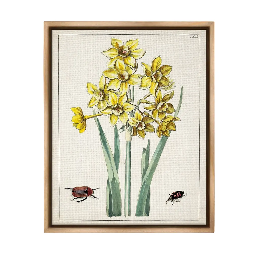 Stupell Beetles With Daffodils Framed Floater Canvas Wall Art Design By World Art Group - 17 X 21 - Grey