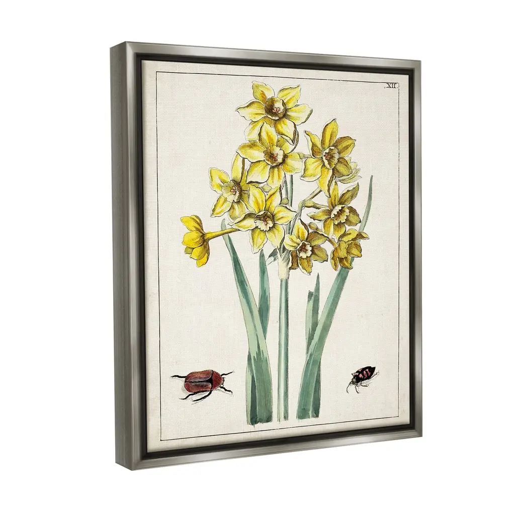 Stupell Beetles With Daffodils Framed Floater Canvas Wall Art Design By World Art Group - 25 X 31 - Grey
