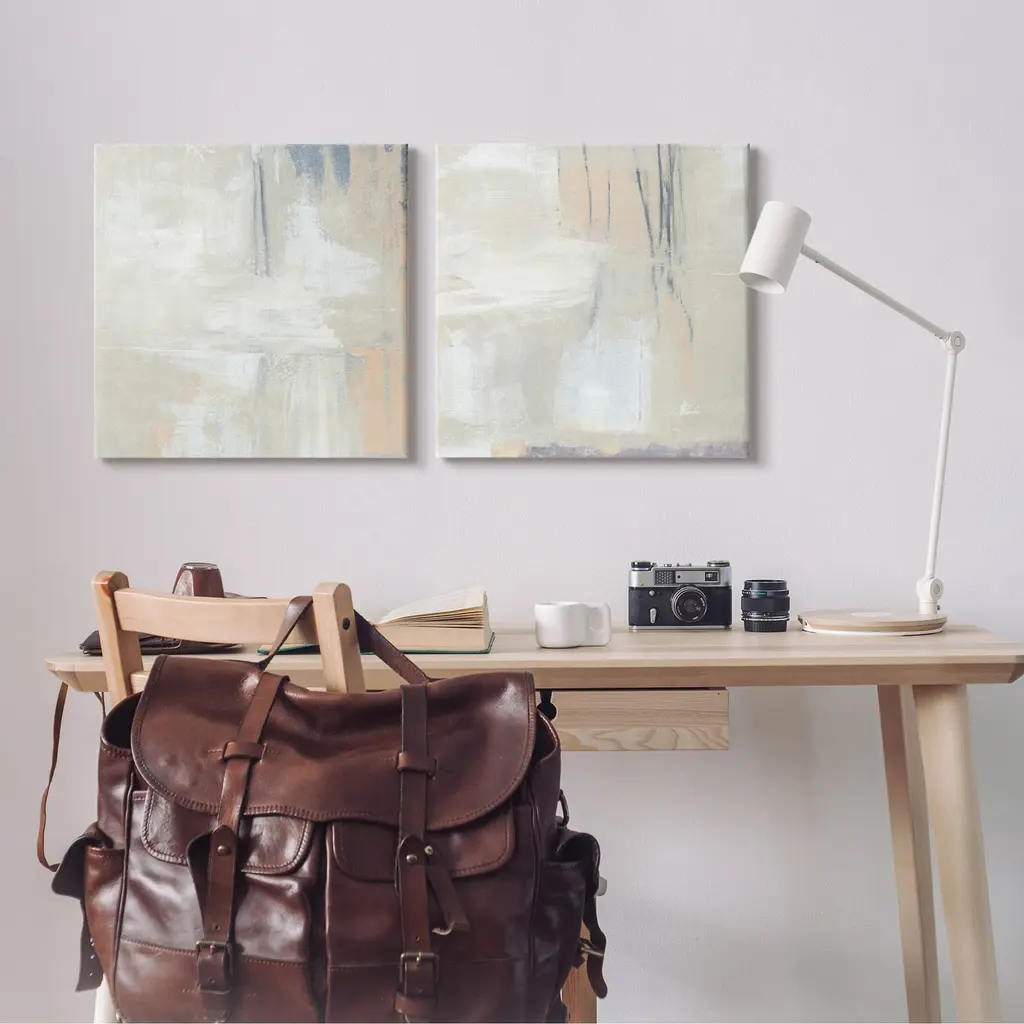 The more the better, right? Multi-Piece Canvas Sets help fill up the entire wall with excitement. Proudly made in the USA, Our stretched canvas is created with the highest standards. We use only the highest quality inks and canvas on our in house printers, and then hand cut and stretch each piece over a 1.5 inch thick wooden frame for hanging. The art comes ready to hang with no installation required.Features:Dimensions: 2 Piece Set, Each Panel is 17 x 1.5 x 17 InchesStretched Canvas Set Sizes IncludeStandard: 2pc, Each is 17 x 1.5 x 17Large: 2pc, Each is 24 x 1.5 x 24Wall Art is Ready to Hang - No Installation or Hardware Needed. For Easy Set Up Lean or Layer Artwork on Shelf or Against Wall.Our stretched canvas is created with the highest standards. We use only the highest quality inks and canvas on our in house Mimaki printers, and then hand cut and stretch each piece over a 1.5 inch thick wooden frame for hanging. Made In USA.Artwork Relates To: Painting; Collage; Modern, Beige, AbstractDesign by Annie Warren