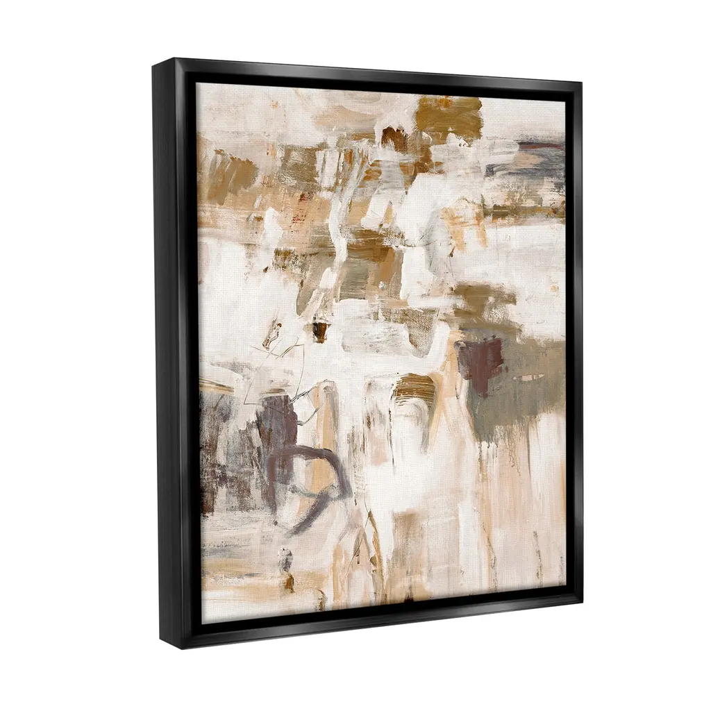 Stupell Beige Abstract Pattern Framed Floater Canvas Wall Art Design By Lisa Ridgers - 25 X 31 - Black