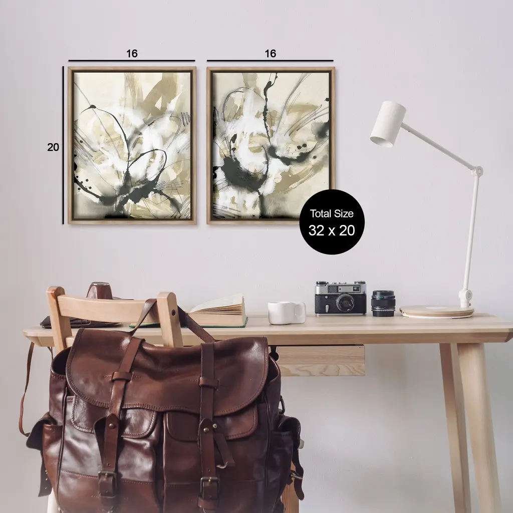 Stupell Beige & Black Splatter Framed Floater Canvas Wall Art Design By June Erica Vess (Set Of 2) - 17 X 21 - Brown